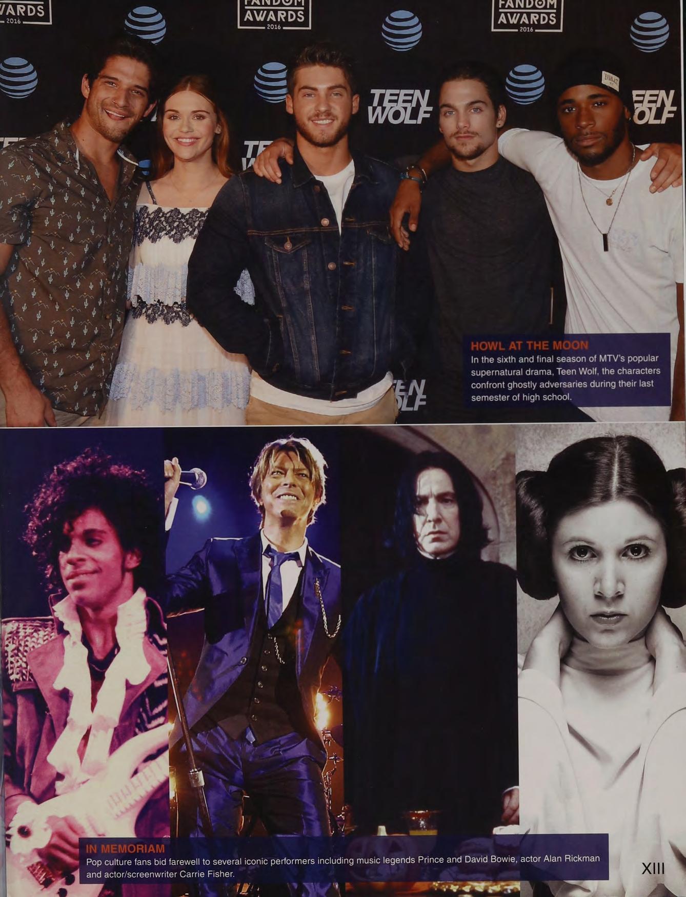 Pop culture fans bid farewell to several iconic performers including music legends Prince and David Bowie, actor Alan Rickman and actor/screenwriter Carrie Fisher. Vie