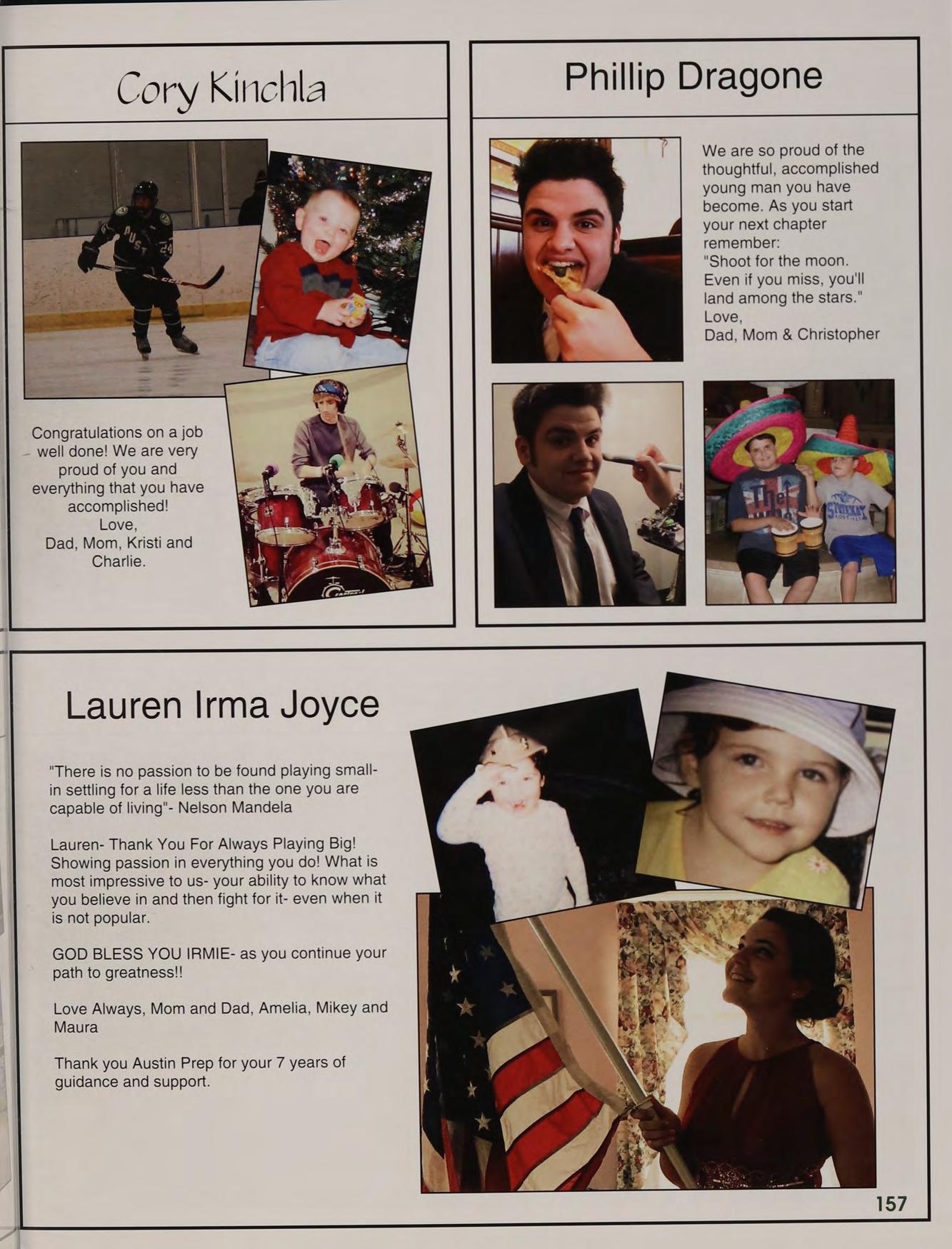 Congratulations Michael, on your graduation from Austin Prep. You have stayed true to yourself and have pursued your dreams.You have achieved a very high level of success in academics, as well as in the fields of Music and Theater. And now you will be taking your talents to Vassar College! am very proud of you as you continue on your exciting path to excellence and success!
