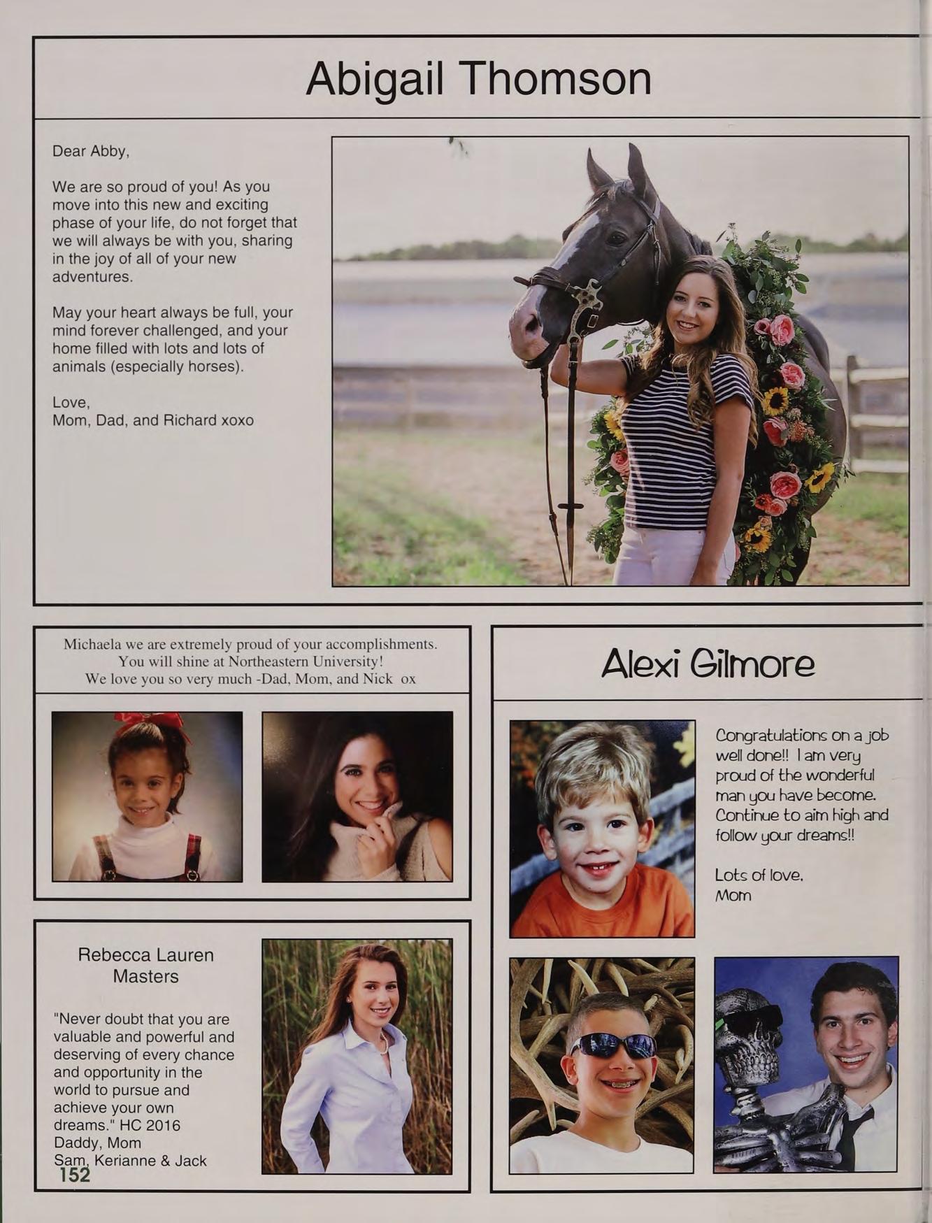 We have been proud to watch you grow into a beautiful young lady over the last 4 years. You are smart and intelligent and will have many opportunities to do remarkable things as you enter college and move into the next chapter of your life. Remember to be a lifelong learner and life will bring you boundless joy.