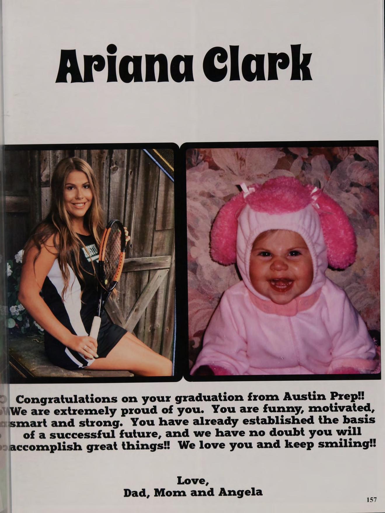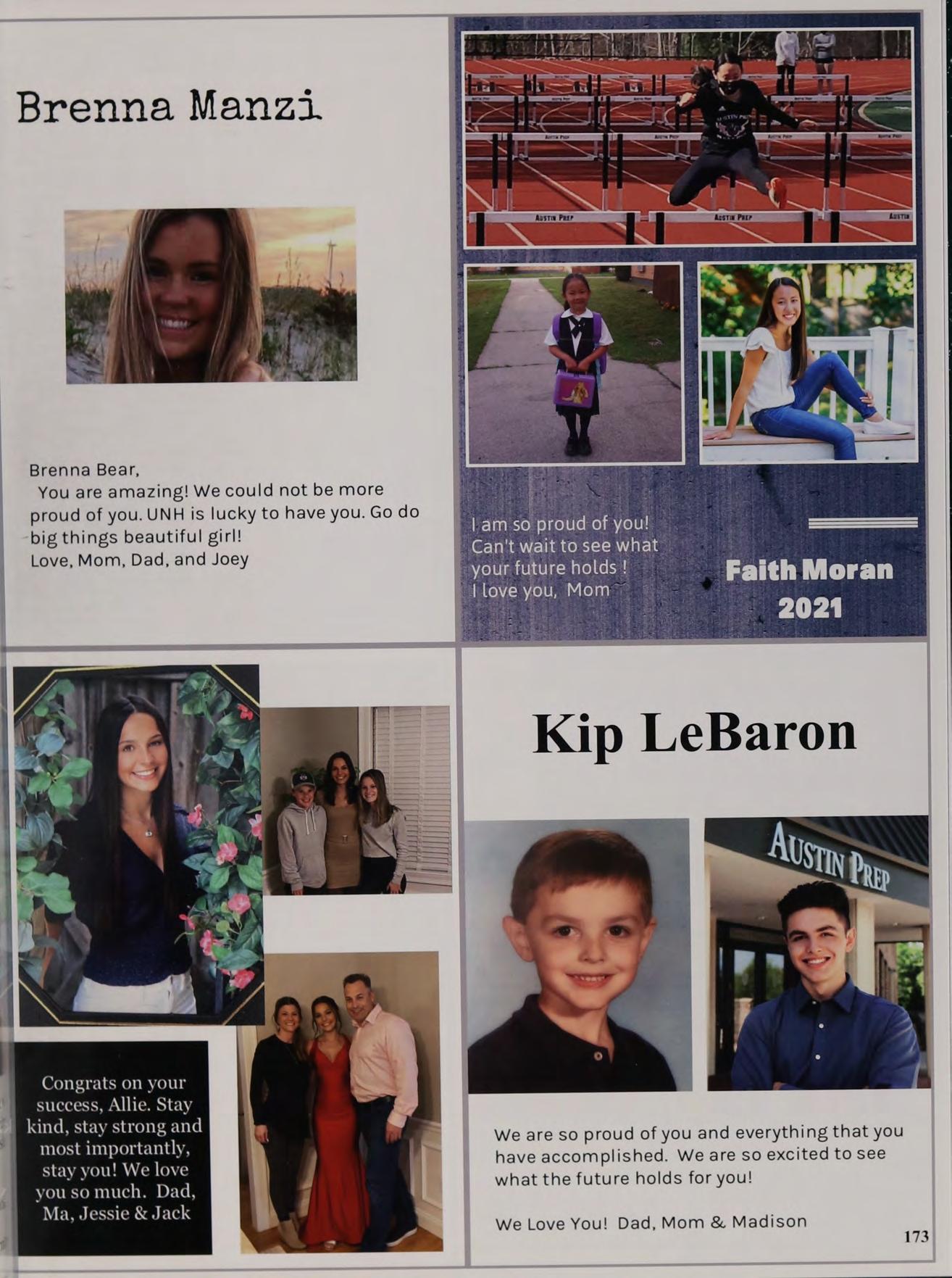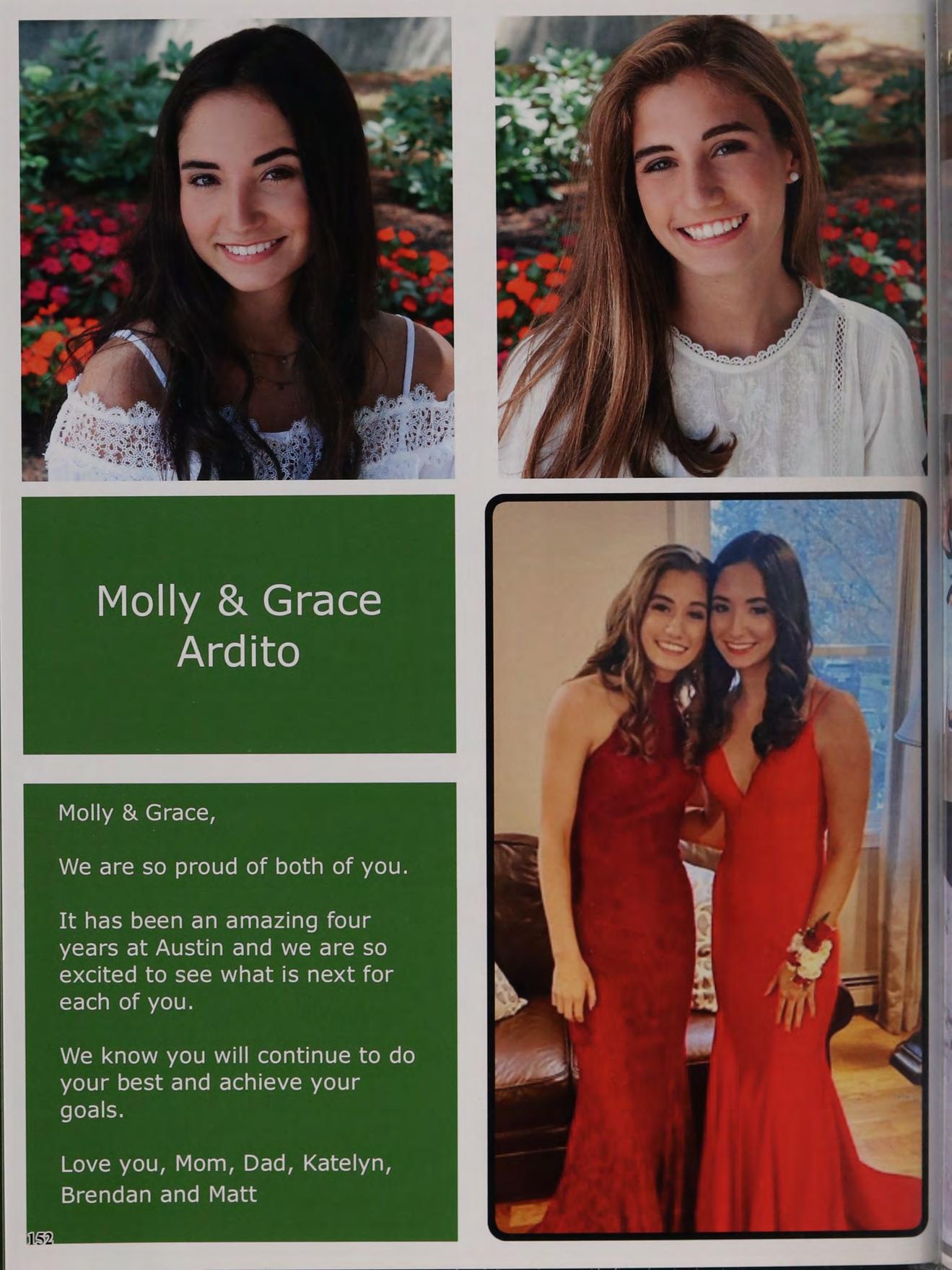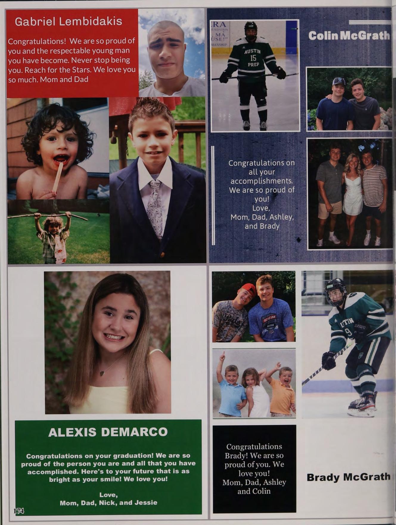 » Congratulations on your graduation from Austin Prep! \We are extremely proud of you. You are funny, motivated, «smart and strong. You have already established the basis of asuccessful future, and we have no doubt you will accomplish great things! We love you and keep smiling!!