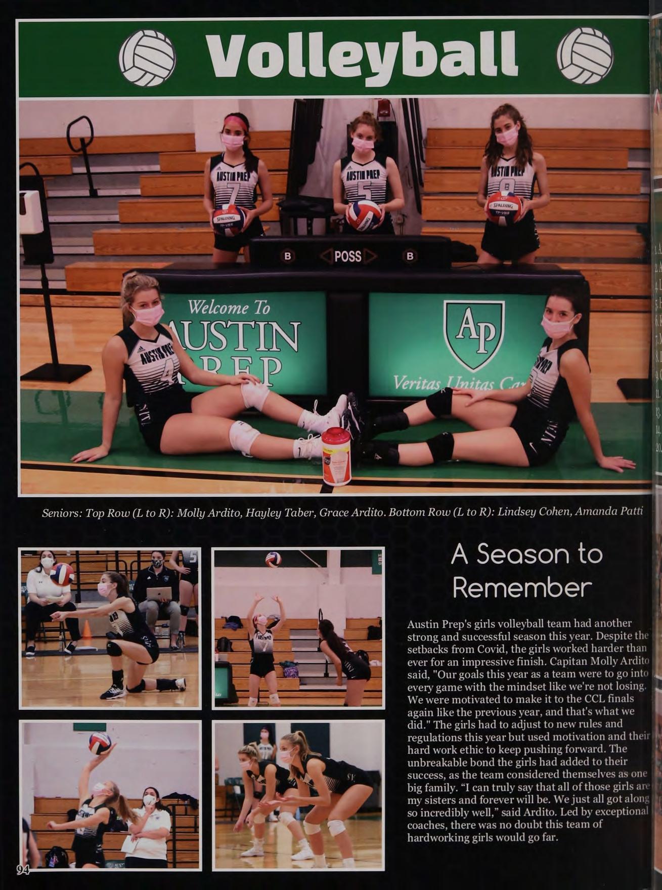 Playing for the Austin Prep eee os ee volleyball team and also going the victor.” to the numerous Austin Prep ern girls hockey games to support Prigmore my sisters who played on the Haley Taber team. — My favorite memory while at Austin Prep was