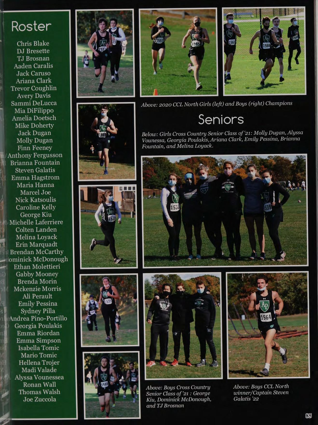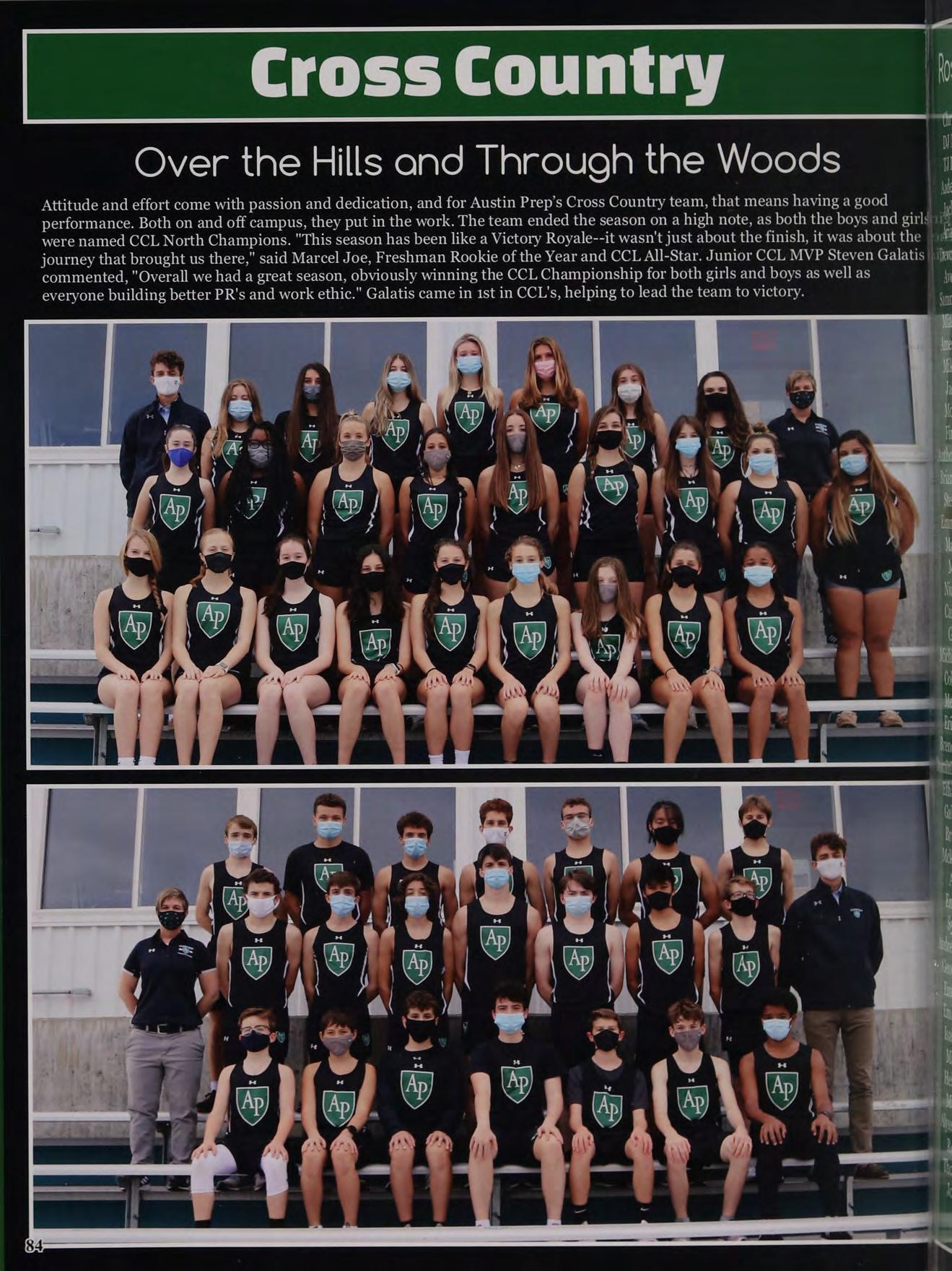 Attitude and effort come with passion and dedication, and for Austin Prep’s Cross Country team, that means having a good , performance. Both on and off campus, they put in the work. The team ended the season on a high note, as both the boys and girls A were named CCL North Champions. "This season has been like a Victory Royale--it wasn't just about the finish, it was about the dt journey that brought us there," said Marcel Joe, Freshman Rookie of the Year and CCL All-Star. Junior CCL MVP Steven Galatis ji commented, "Overall we had a great season, obviously winning the CCL Championship for both girls and boys as well as dy everyone building better PR's and work ethic." Galatis came in 1st in CCL's, helping to lead the team to victory. ba