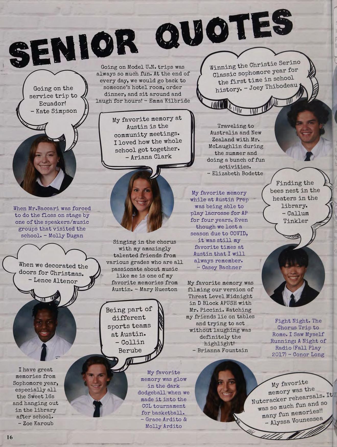My favorite memory is the time spent with teachers and friends. I feel like Austin Prep has not only taught me mtg 7 knowledge but also life lessons. — Ms. Storti a L tesacn Especially when I met my best friends for life. Now school has ended but DeMarco memories at Austin will last forever.