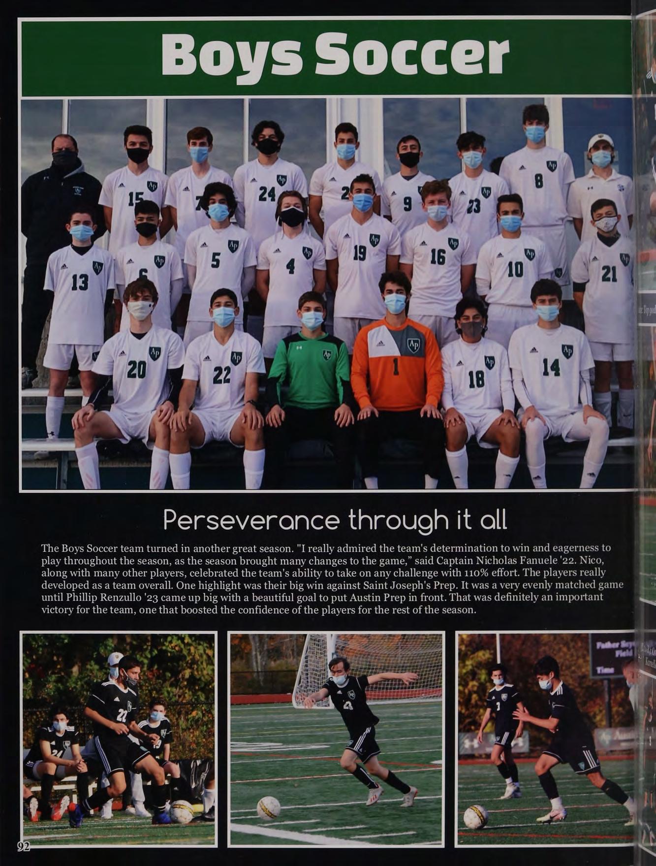 4p ustin Prep’s fall season has - sways been one of the best times Tot the year. A new school season o dith new opportunities to grow ve ad succeed. The start of 920-2021 school year brought ome changes, but the Austin Prep ommunity still made it great. "very sports team had to adjust to few new rules and modifications, ‘ 4} at thrived and excelled with «| /wery opportunity. Austin Prep /*) vas able to participate in all of -. 4eir favorite events, such as the > fiddle School Thriller eo verformance, Convocation Mass, ») ad the Halloween festivities. All oy and staff members along “ith coaches adapted to make the