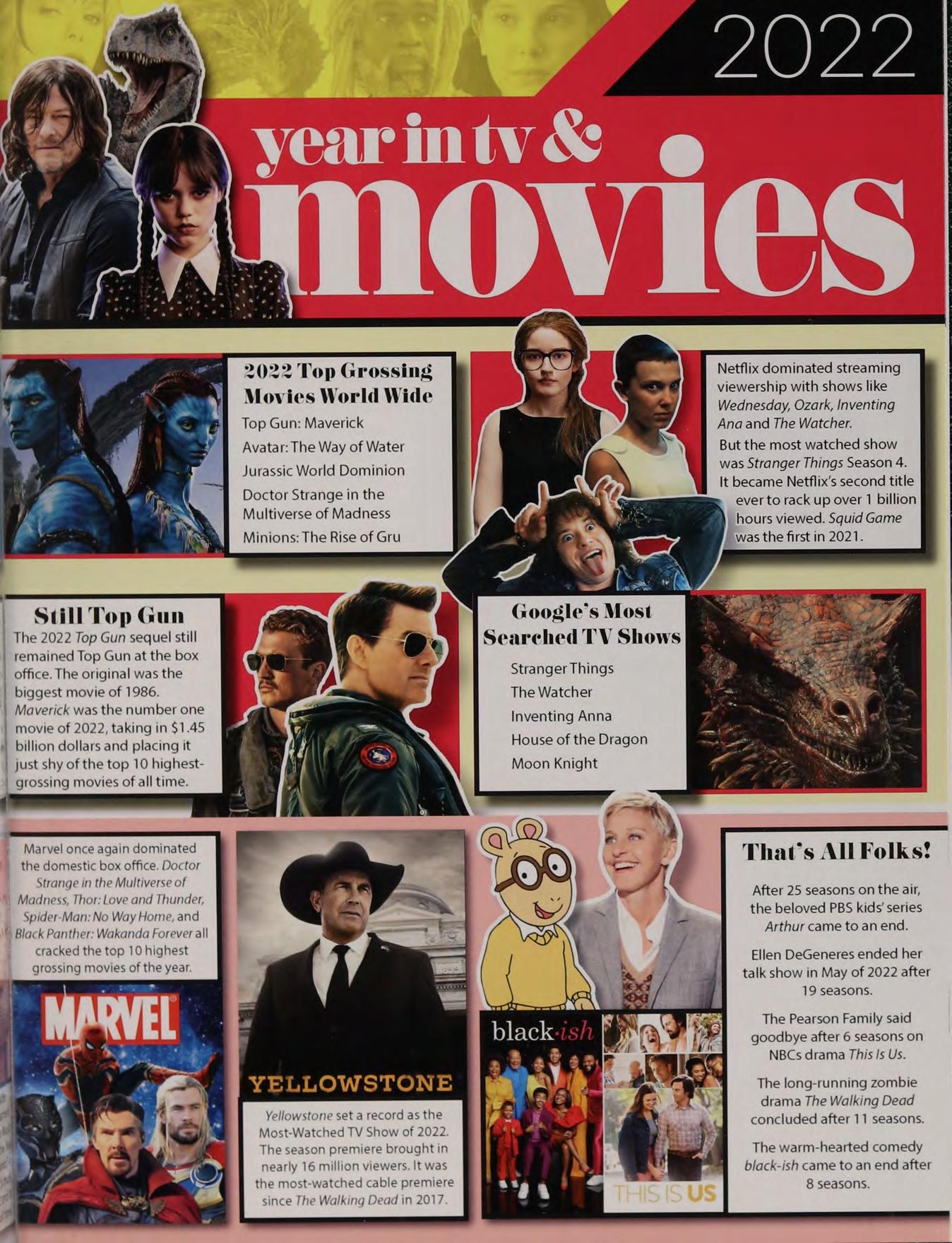 Marvel once again dominated the domestic box office. Doctor Strange in the Multiverse of Madness, Thor; Love and Thunder, Spider-Man:No Way Home, and Black Panther: Wakanda Forever all cracked the top 10 highest grossing movies of the year