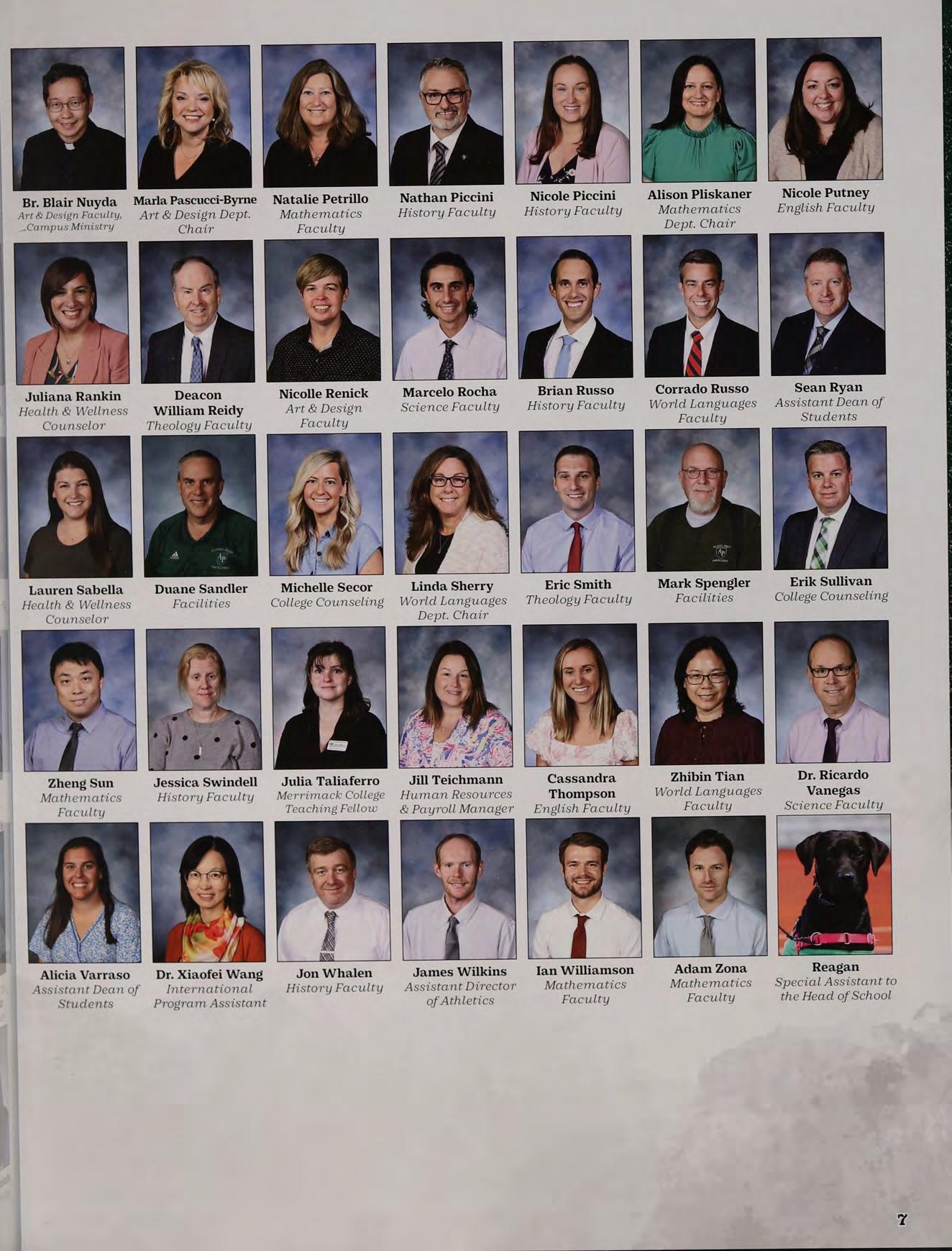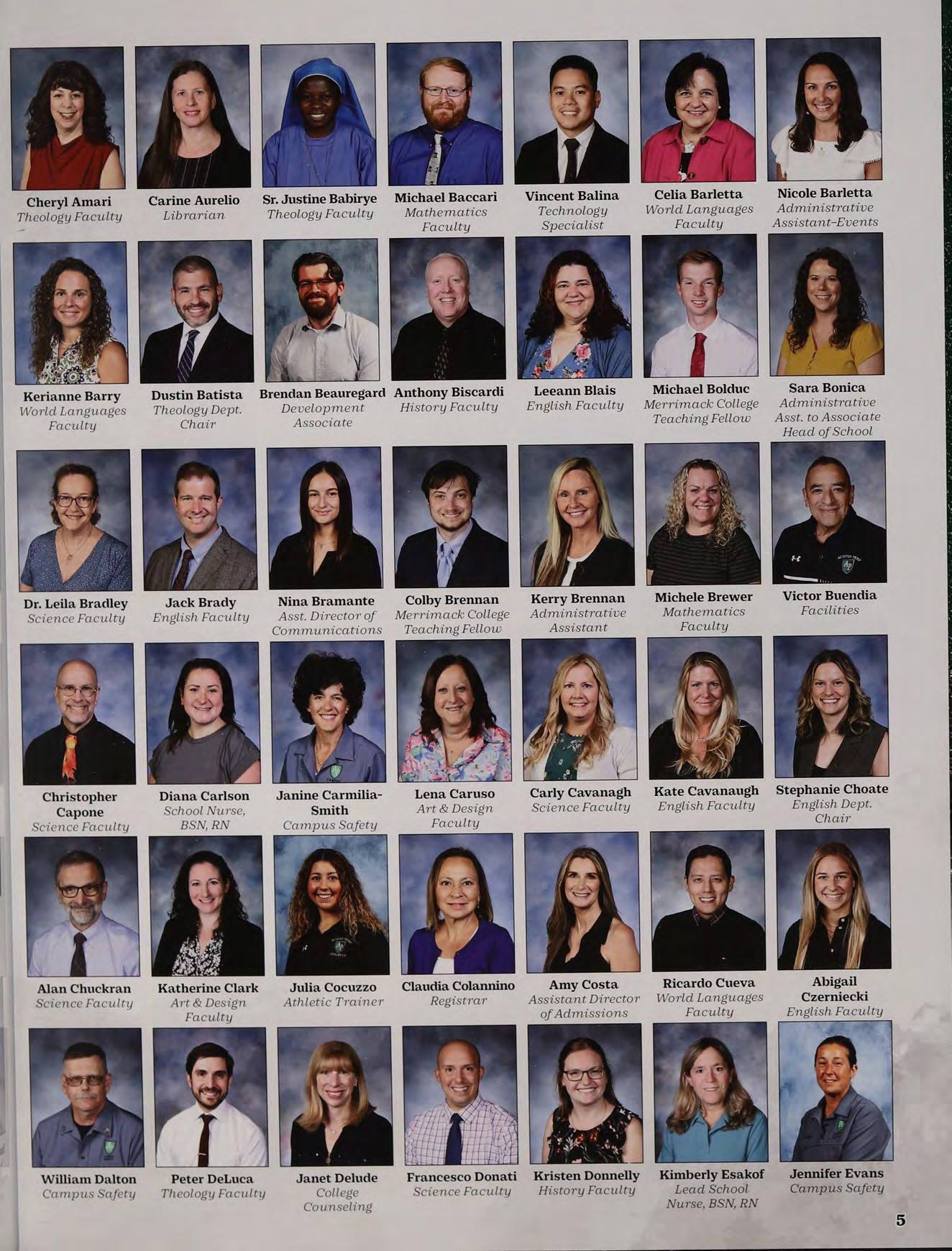Sr. Maria Nassali, DM Cynthia Pitta Hillary Repucci Jennifer Brogan Michael Fahey Todd Moriarty Assistant Head of Director of College Director of Director of Director of Director of School, Director of Counseling Development Integrated Facilities Food Services Campus Ministry Learning & Operations