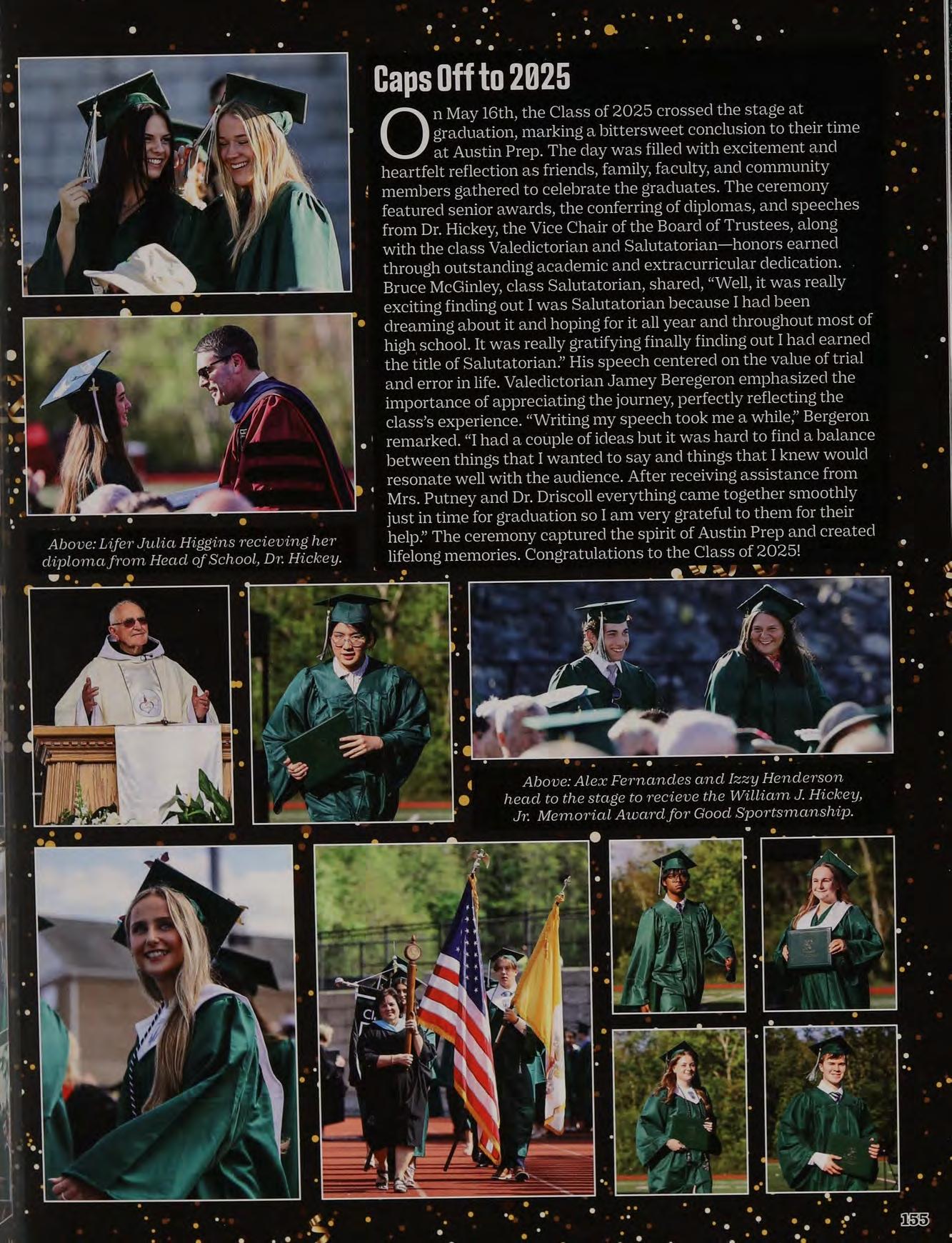 Above: Mrs. Sherry ts recognized at graduation for her 25 years of teaching at Austin Prep.