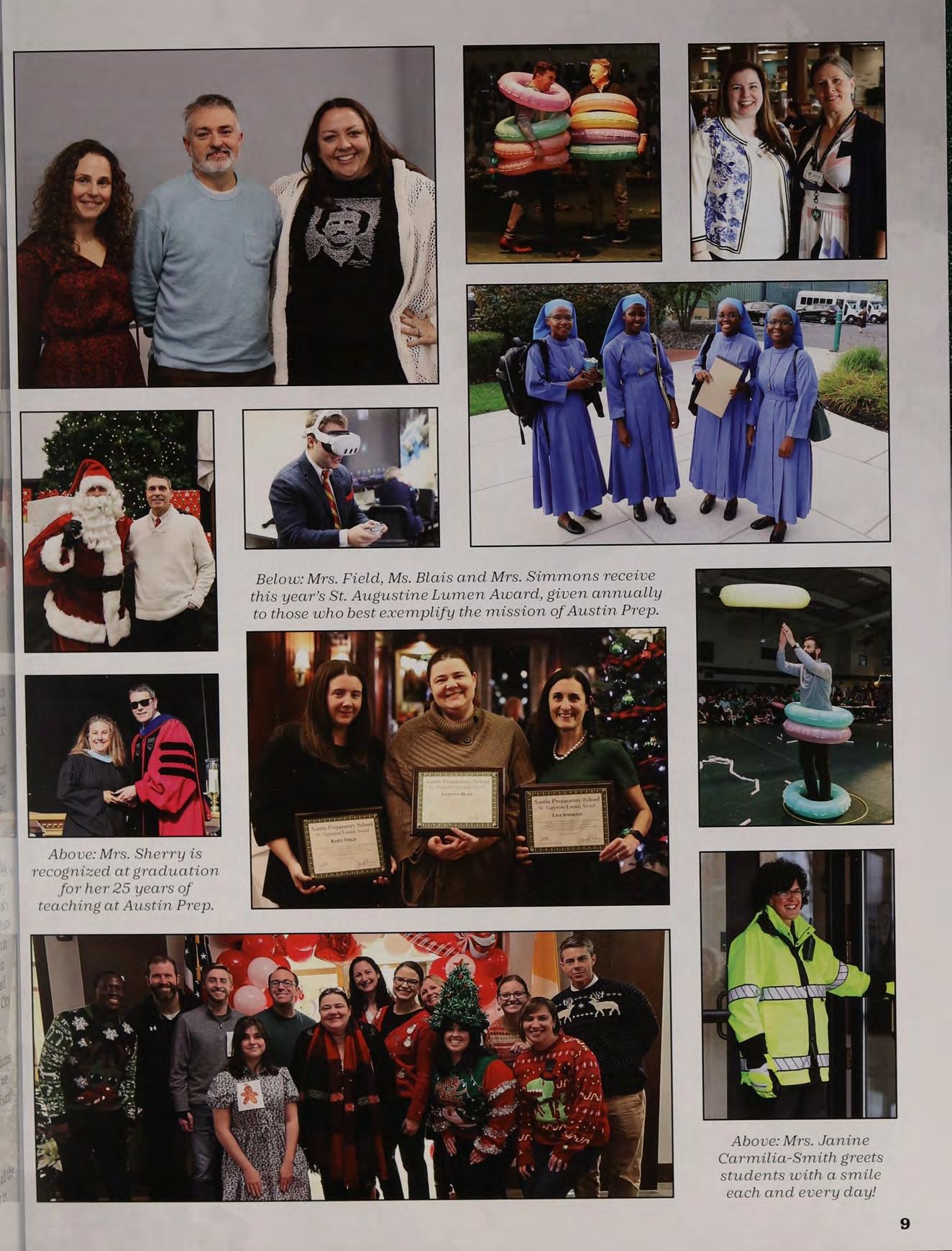 Below: Mrs. Field, Ms. Blais and Mrs. Simmons receive this year’s St. Augustine Lumen Award, given a nnually to those who best exemplify the mission of Austin Prep.