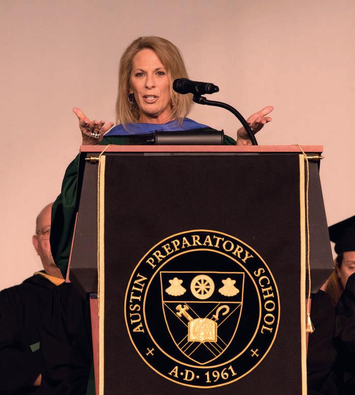 Reminding students that they each own their own futures, Mrs. Marchetti promised that future success would be measured in terms of positive impact on others. By employing a heart to heart approach of care and empathy, skills developed at Austin Prep, graduates can create meaningful lives.
