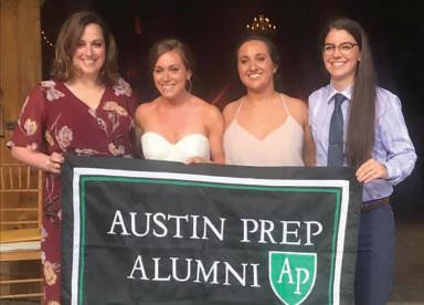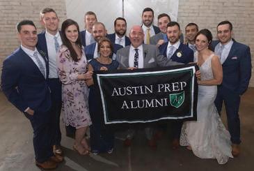 Are you getting married? The Office of Alumni Relations will lend you an Austin Prep banner for photos at your wedding.