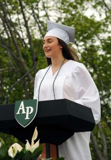 Bowdoin College-bound class salutatorian Jenna Albanese put the disruption into perspective when she said it was more encouraging to think of the times friends had together rather than what was lost. “We have grown stronger from this challenge. I know I have grown more grateful for the moments I would have taken for granted a few months ago.”