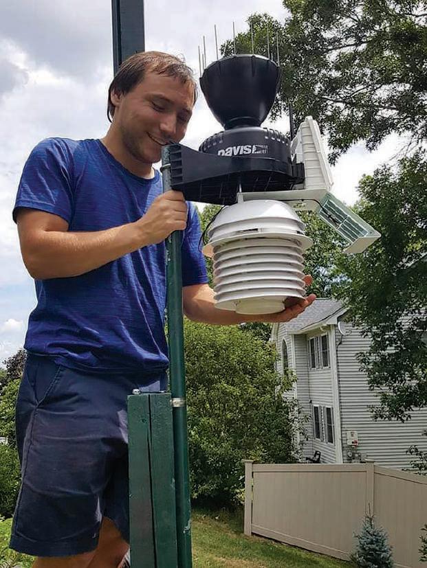 To really drive the lesson home, Dr. Blewitt brought in class of 2013 alum Joe Sciacca, a consulting meteorologist and a man whose knowledge of weather is matched only by his Force 7 enthusiasm for the subject. Joe’s clients include local governments, school systems, hospitals, truck fleets, almost every kind of organization that has to know what will happen next weather-wise. “They want to know when, how much, and estimated road temperature,” says Joe, who is often awake all night monitoring conditions and updating his clients.