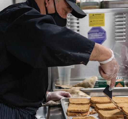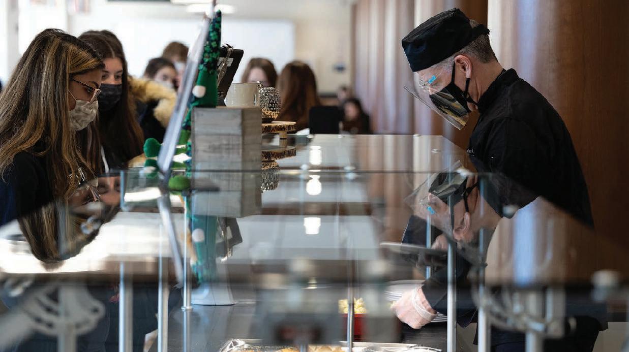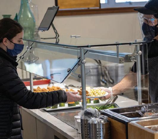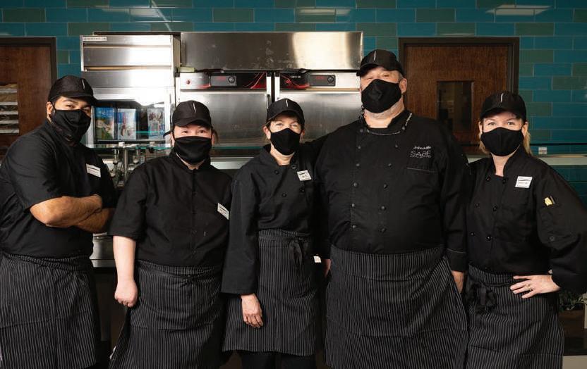 The SAGE Dining team of 10 have an attitude of “Whatever it takes,” and have evolved from preparing 850 regular meals to 500 a day during the Hybrid model.