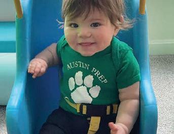 Campus Security Officer and proud grandfather Pat Iapicca shared 1-year-old grandson Henry’s photo in his Austin Prep onesie. #APClassof2037