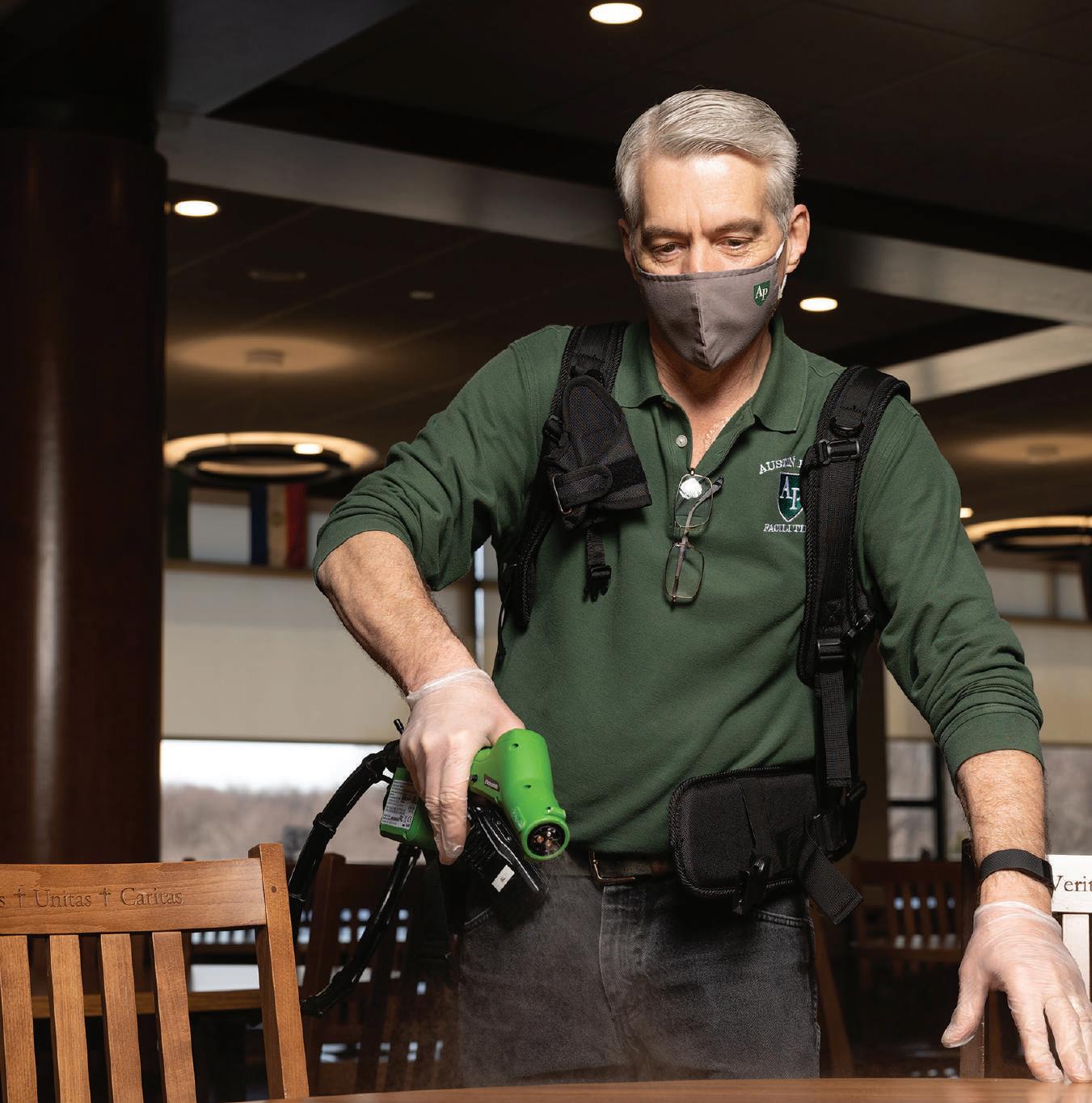 Cleanliness was also essential. Austin Prep contracted an overnight maintenance service, but during the day the facilities team wore Electrostatic Backpacks – like those in the movie Ghostbusters- to spray between periods.