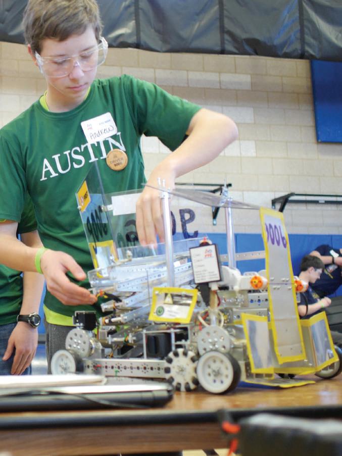 A key component of the academic strategic initiatives was the incorporation of the Arts Program into the curricular day. We accomplished this by modifying the master schedule to include a seventh instructional period. And we added courses in technology, service learning, math, science, and humanities as well. We now offer AP Computer Science in the Upper School, a Robotics course in the Middle School, and a Robotics Club for both. We invested nearly $50,000 in robotics equipment – money raised from Austin Prep’s 2014 Annual Golf Tournament.