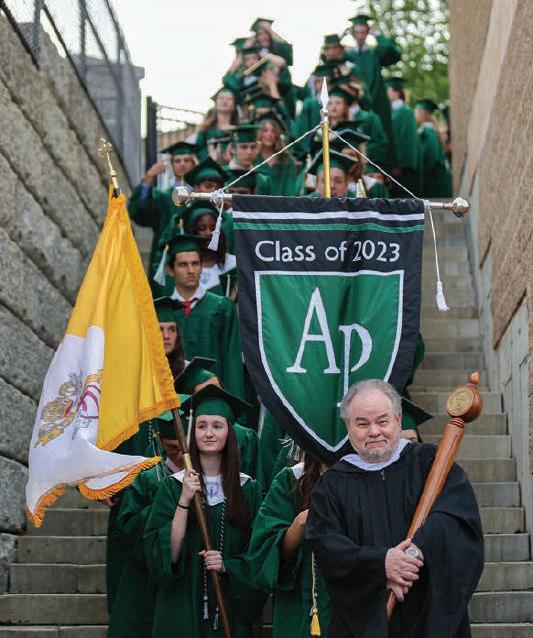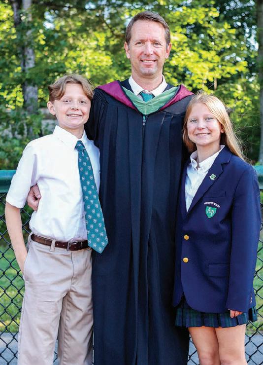class members attained as a result of the persistent change, adjustment, and expansion experienced during their Austin Prep Journey. Mr. Bouchard also referenced the impact of the Austin Prep experience on his own children, all three who have since graduated from college and are pursuing their professional lives. “ I remain extraordinarily grateful for all that Austin Prep did to prepare them for college and life beyond,” Mr. Bouchard said. “When they graduated, they may not have fully understood the real gift of the education they received. But as young professionals, they now see the importance of the indispensable values of service and citizenship. They now appreciate that the fullest life involves a commitment to act for the benefit of other people.”