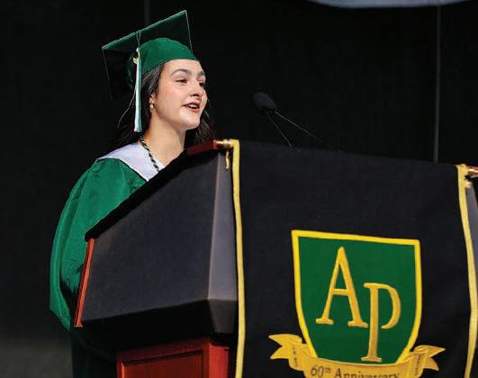 Class of 2023 Valedictorian, Olivia Ferri, reflected not only on the legacy that will be left behind by the Class of 2023, but also how that legacy has helped provide the tools of intelligence, leadership, integrity, and compassion for the class as they move on in their Journey. “As we step out of the classroom and into the world, I hope your choices are coupled with introspection, your brilliance with comedy, your accomplishment with humility, and your warmth with sincerity. I hope you consider how you choose to sow the seeds of your life and foster their growth. And most importantly, I hope you remember your classmates at Austin Prep, the years you gave to them, and the years they gave back to you,” Olivia said.