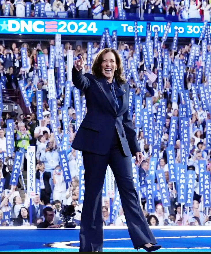 the White House against Republican Donald Trump with a convention speech on August 19 that began with and extended standing ovation from the packed arena and shouts of “We love you (Continued On Page 02)