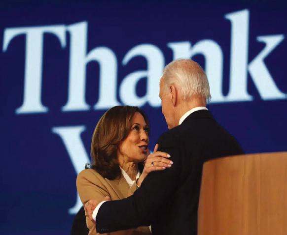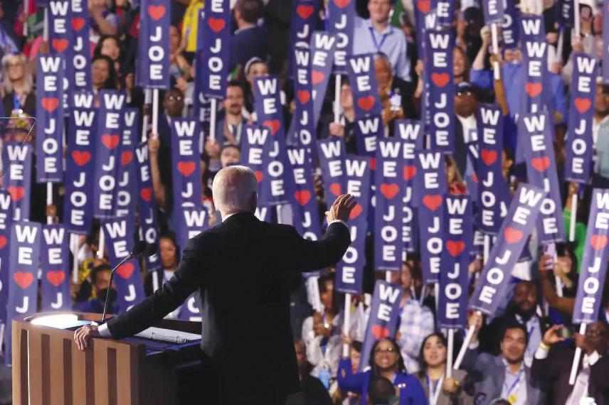 (Continued From Page 01) It was a farewell speech to the party he has served for half a century – with five months left in office. Wiping away tears after being introduced by his daughter Ashley, Biden waved to the crowd. “Are you ready to vote for freedom? Are you ready to vote for democracy and for America? Let me ask you, are you ready to elect Kamala Harris and Tim Walz?” Biden said.