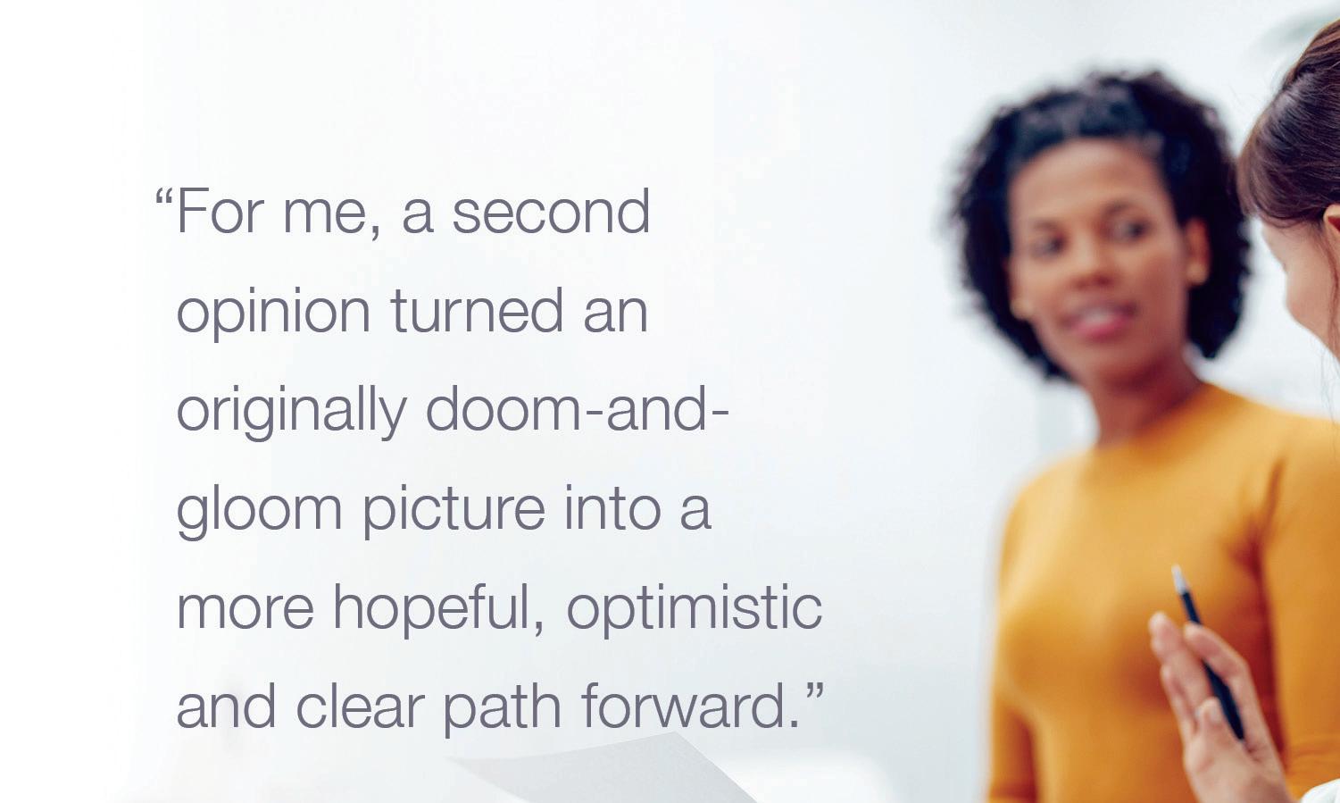 “For me, a second opinion turned an originally doom-and-gloom picture into a more hopeful, optimistic and clear path forward,” said Mary Beth M., a bladder cancer survivor. “It’s so important to seek a second or even a third opinion if you feel uncertain during your journey with bladder cancer.”