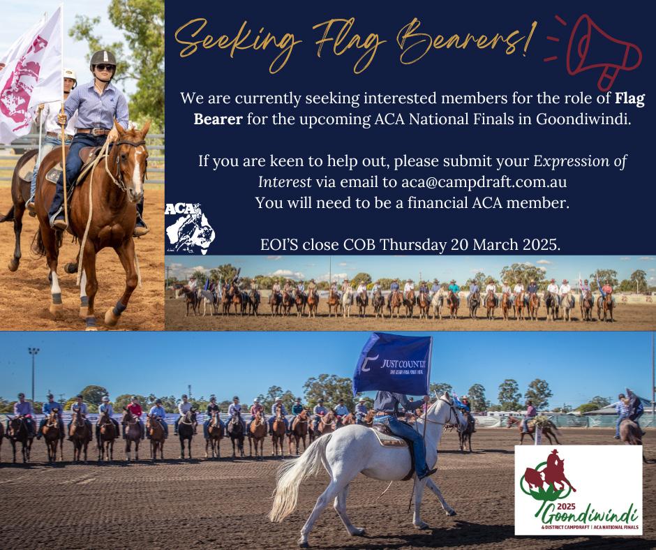 Nomination forms can be obtained from the ACA website at campdraft.com.au or by contacting the ACA Office. They must be delivered to the Operations Manager by 12 noon on Friday 21 February 2025.