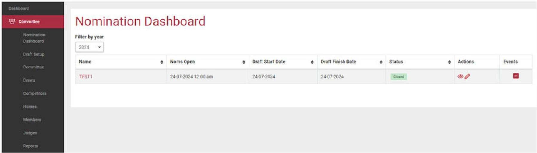 To nominate a competitor, ensure they are linked to the correct horse(s). If not linked, you won’t be able to nominate on their behalf.