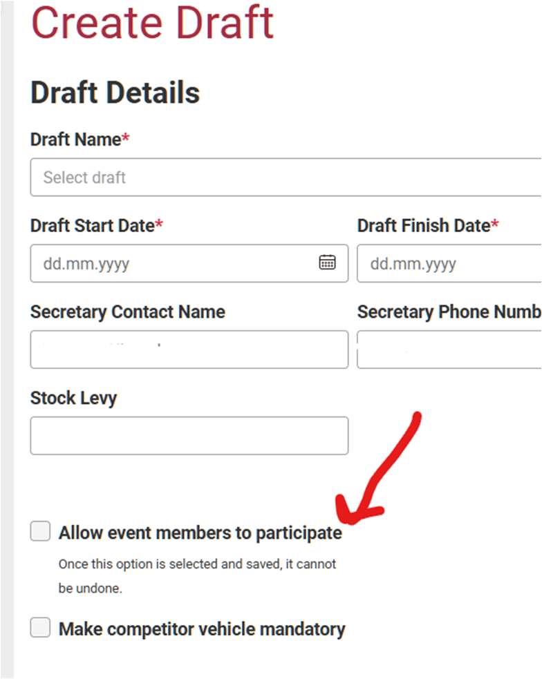 Mandatory Vehicle Report: Required if enabled in draft setup. Blocks competitors without one
