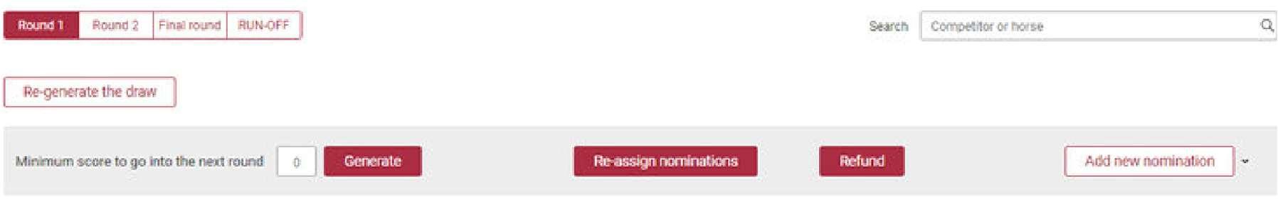 Reassign Nominations: Can be reassigned by horse or competitor