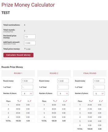 Prize Money Summary: Confirm the event, placings and prizemoney for each round’s payouts You can also edit calculations from here as many times as needed before the prizemoney payouts are finalised