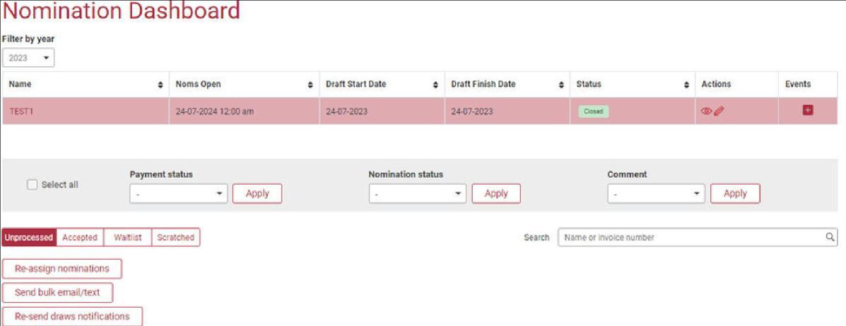 • Finalise: Sends invoices to ‘accepted’ & ‘unpaid’ competitors. Waitlists open