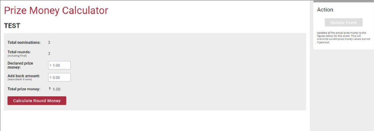 Prize Money Summary: Lets you review and edit payouts for each round before finalising