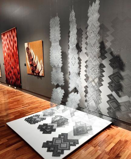 Inherited Borders, a work by textile artist Jeanette Stok, translates to galvanised wire and wire mesh a traditional Norwegian embroidery technique called Hardanger, and references her cultural inheritance from past generations of her family.