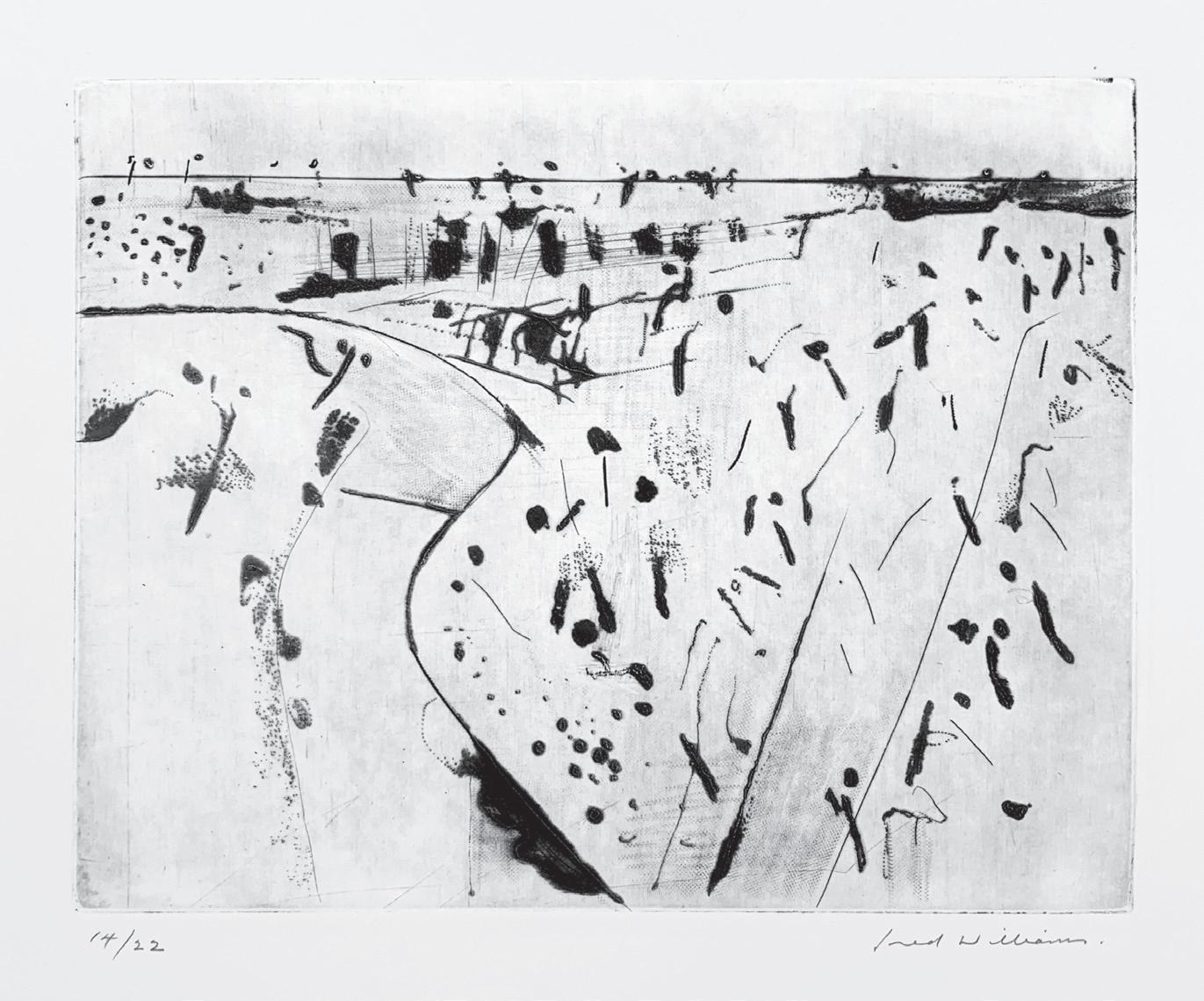 Fred Williams was a hinge on which the discipline of modern etching in Australia has swung. Many local artists made etchings before him. But, after he immersed himself in printmaking, creative attitudes were changed. What artists in this country now valued as they crafted an etching was different.