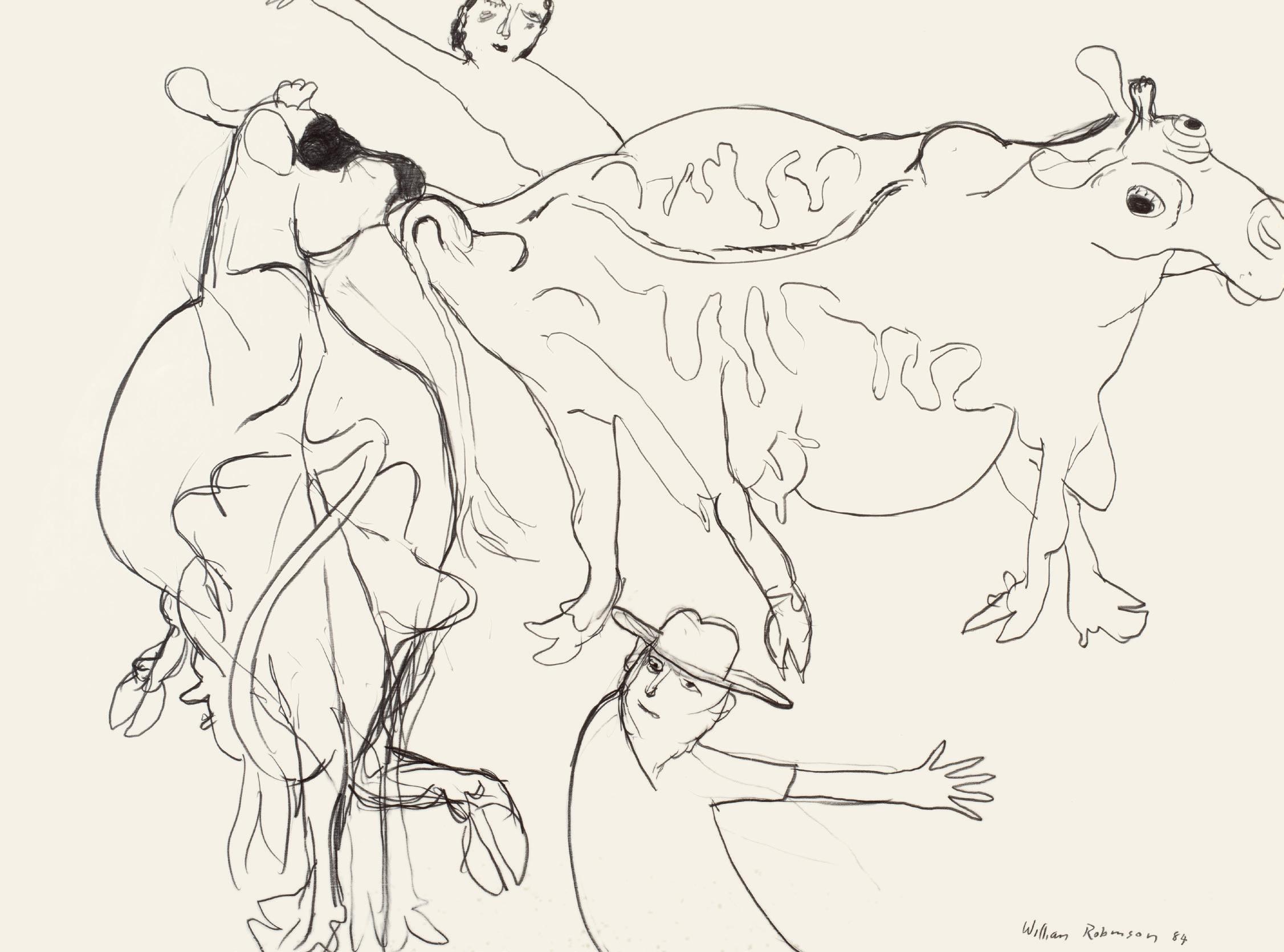 Chasing the cows 1984 pencil on paper 56 x 76 cm