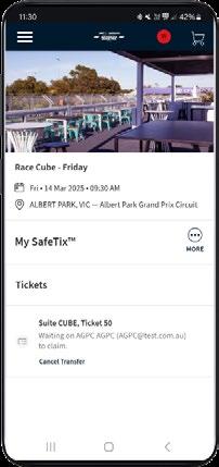 To ensure a seamless entry and to make your experience as enjoyable as possible, SafeTix technology requires all hospitality guests to download their digital tickets prior to arriving at Albert Park.