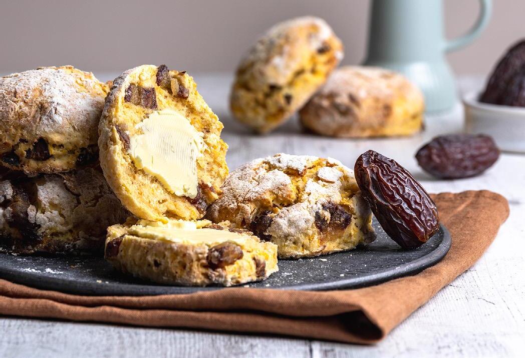 5.5cm round cutter and cut rounds as close together as possible. Divide the scones onto the lined trays leaving 1cm gap between each scone.