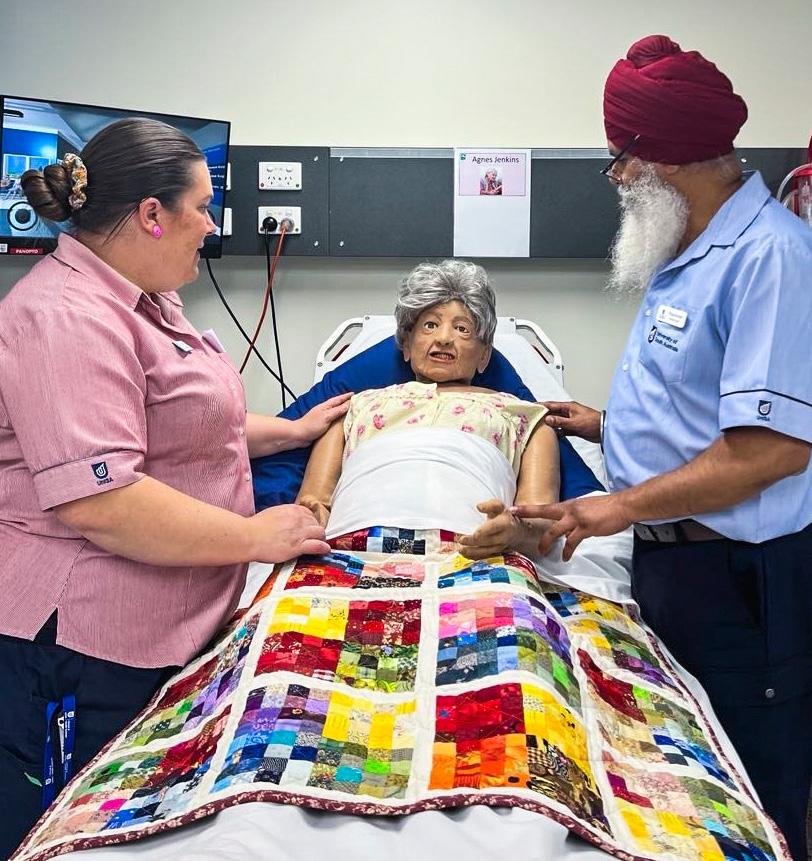 Right: Clinical Nurse Educator supporting a UniSA student to provide care to Agnes (reproduced with permission)