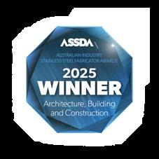 The standout aspect of this project was the involvement of ASSDA’s Young Professionals Network. AWG worked closely with emerging stainless specialists across the ASSDA membership to develop a conforming design proposal, giving them valuable exposure to a highprofile government-funded project. Their contributions demonstrated technical expertise and commercial acumen, helping shift material choice from mild steel to stainless steel.