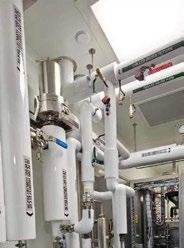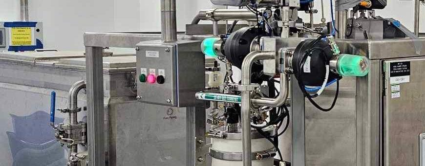The facility included 316L stainless steel tube and fittings in both SF1 (mechanically polished, with a maximum Ra of 0.51 µm) and SF4 finishes (mechanically polished and then electropolished, with a maximum Ra of 0.38 µm), in accordance with the surface finish designations of the ASME BPE standard. Pure Piping also designed and fabricated custom stainless steel