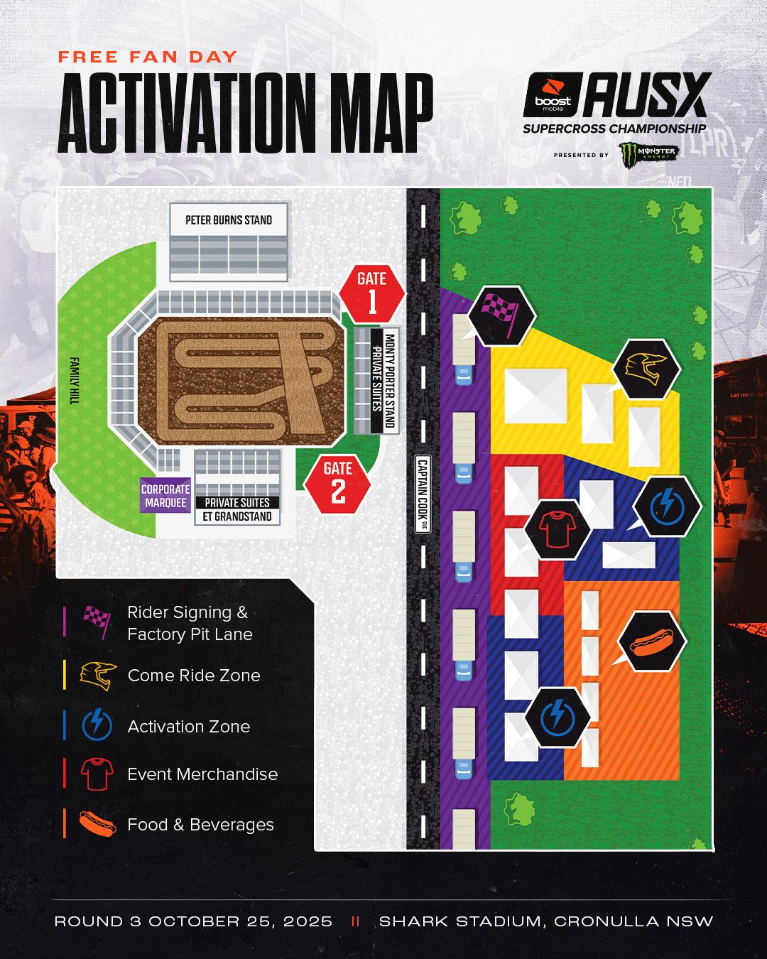 This season has marked an exciting new era for Australian Supercross with Boost Mobile as our Naming Rights Partner. Their energy and commitment to action sports perfectly align with the heart of what we do, and together, we’re pushing the sport to new levels. We’re also proud to have Monster Energy back as our Presenting Rights Partner, bringing their unmistakable global presence and drive for performance to every round.
