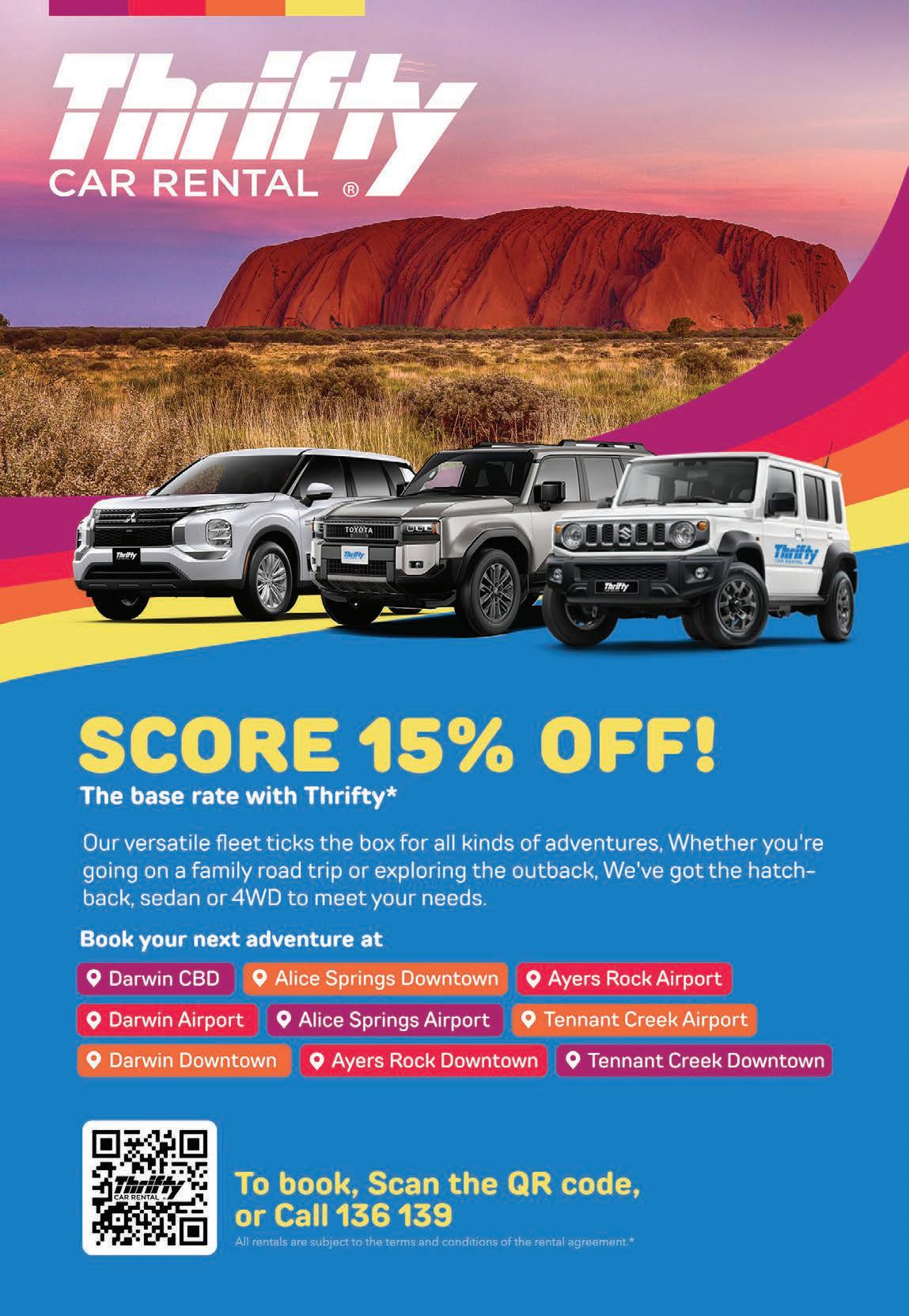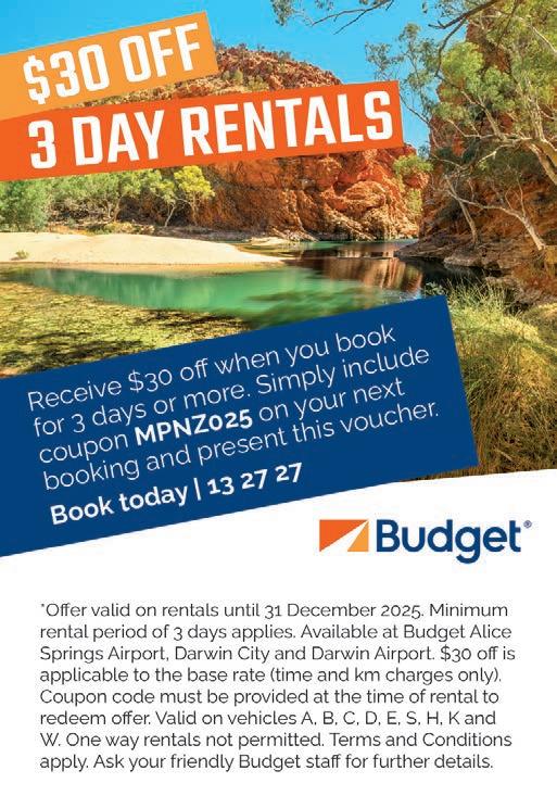 For further information please contact Alice Springs Visitor Information Centre 1800 645 199, discovercentralaustralia. com, or NT Parks at nt.gov.au/parks