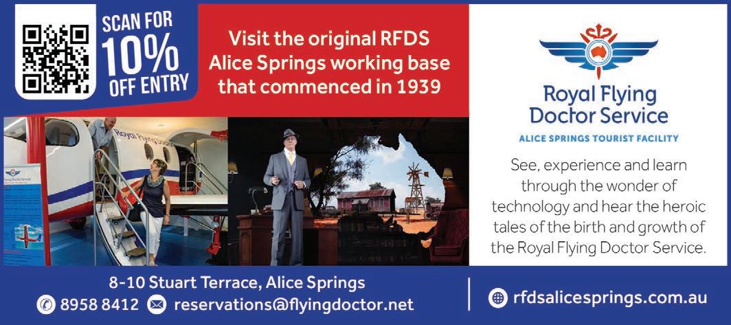 live, work and travel throughout Australia. Discover what it’s like to be inside one of the aircraft and check out a replica fuselage of a Pilatus PC12. There is a large display of historic medical equipment and a range of model airplanes used by the RFDS through the decades. Visitors to the award-winning RFDS Alice Springs Tourist Facility will see a life-size hologram of Rev. John Flynn describing his vision for the RFDS accompanied by realistic and lifelike imagery.