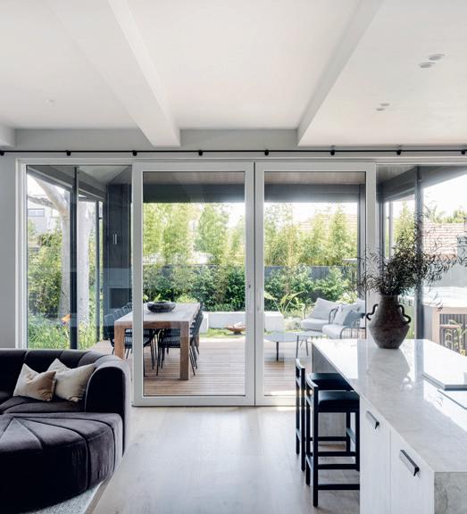 Ormond House was a renovation of the existing home keeping its heritage feel, with a modern extension to the rear. The build incorporated vaulted ceilings with raked windows to match, large sliding doors, sashless windows and louvres. Two sets of stacker doors to the rear opened the inside to the outside, while the clever placement of the large, fxed windows and raked window in the vaulted ceilings brought in so much natural light. A combination of Low E double glazed and single glazed Matlucent louvres achieved the desired air fow and comfortability. The fnished house showed how you can integrate windows and doors with a smaller budget without compromising on quality. This build pays tribute to the old and new.
