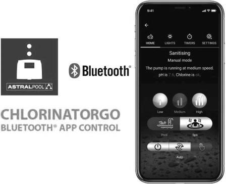 Reverse polarity, self cleaning chlorinator incorporating a high efficiency switch mode power supply that provides pure DC current which provides higher chlorine output. Sophisticated software automatically adjusts reversal periods to extend the life of the electrodes. Large LCD user interface with programmable options. You can now easily control your pool’s water balance with Bluetooth® and the free downloadable AstralPool ChlorinatorGO app on your smart device.