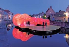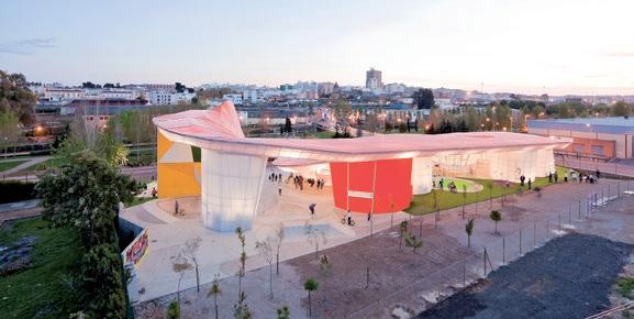 geschaffen wurde, die sich mit den wechselnden Lichtsituationen ständig veränderte. In den folgenden Jahren variierten SelgasCano die Kombination von leichten Metallstrukturen mit einer Hülle aus transluzentem Kunststoff immer aufs Neue: etwa für den aus Modulen bestehenden Pavillon der Fondation Martell in Cognac, bei der schwimmenden, pink-orangefarbenen Badeplattform der Triennale in Brügge oder auch in Londons neuem Kreativquartier. Dort überspannten sie sechs Restaurants und eine Bar mit einer transparenten Freiform, die den Eindruck vermittelt, dass man sich auf einem Straßenmarkt befindet.