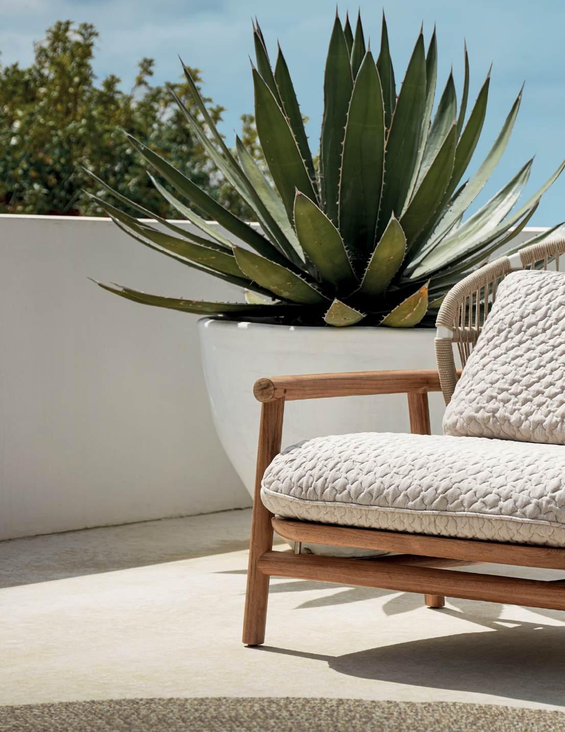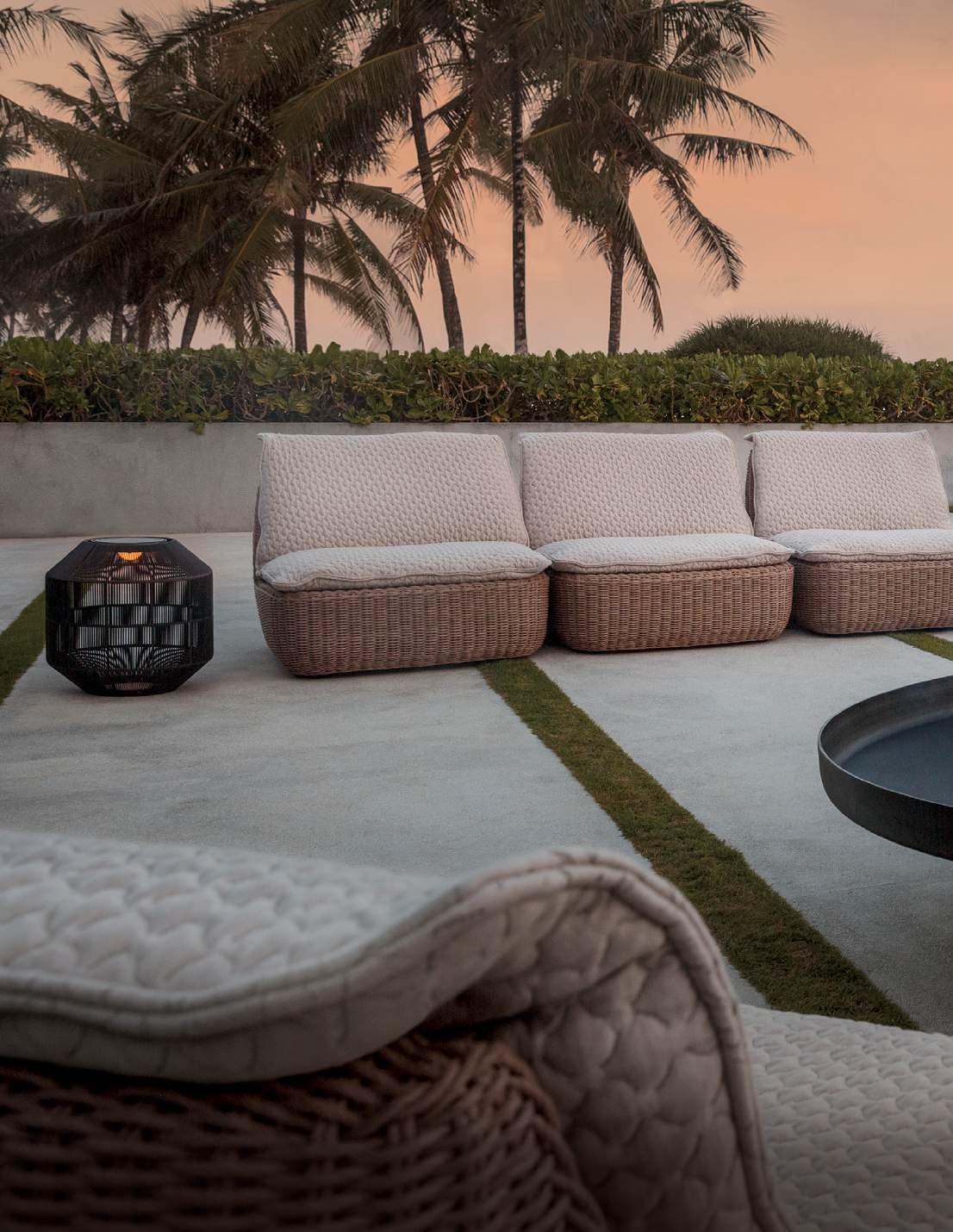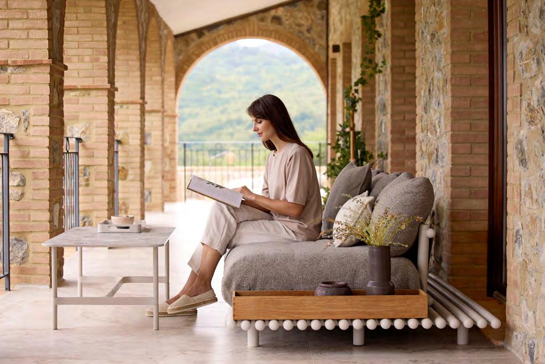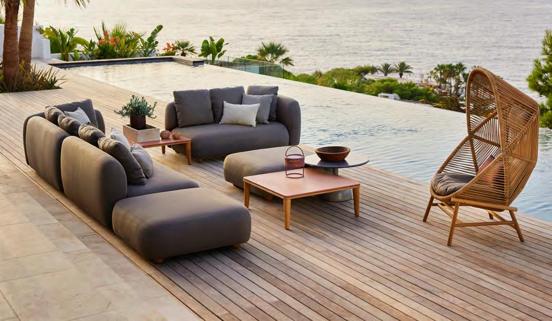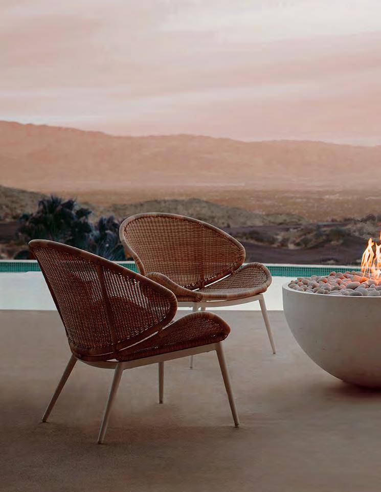 The perfect solution: luxury furniture designed for year-round use, with fade-resistant fabrics, rustproof metals, and allweather materials that maintain their integrity through every forecast. Comfortable, elevated, and built to last, ensuring that every season is patio season.
