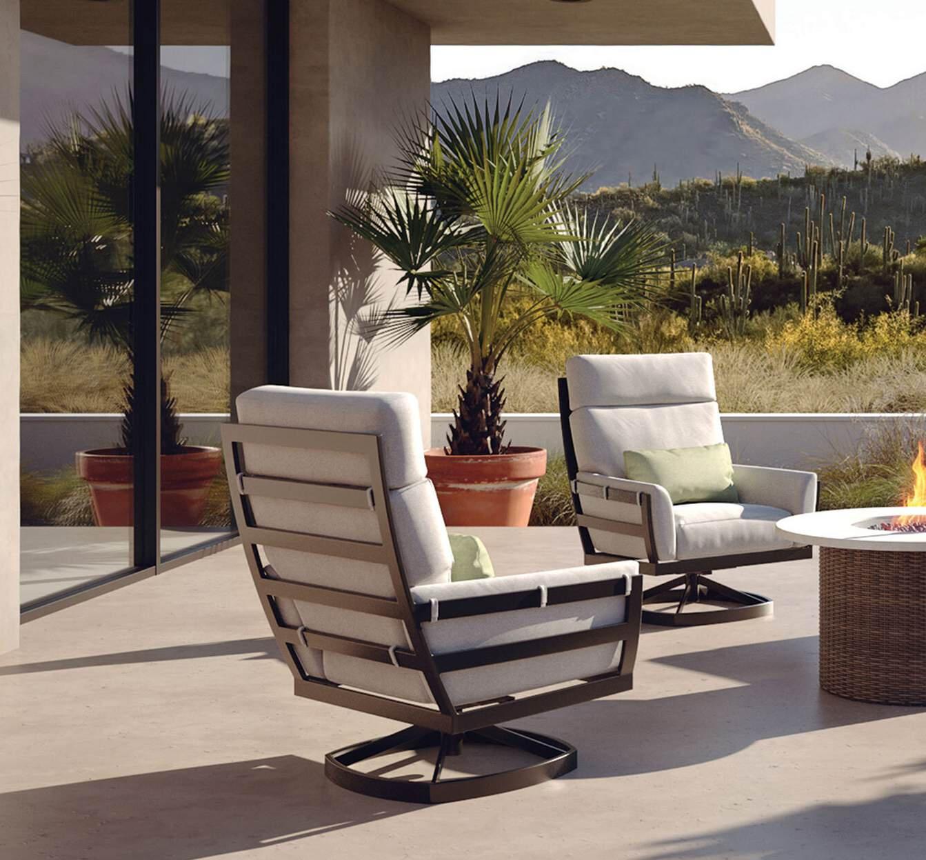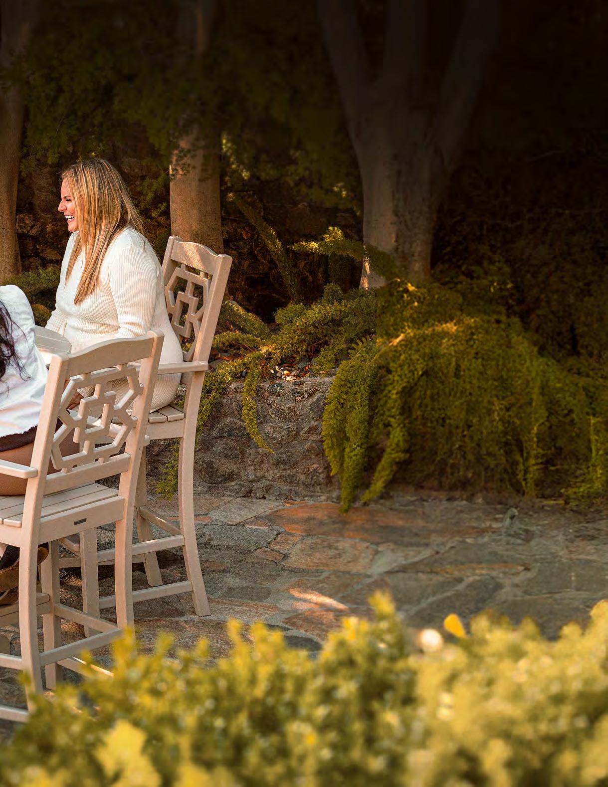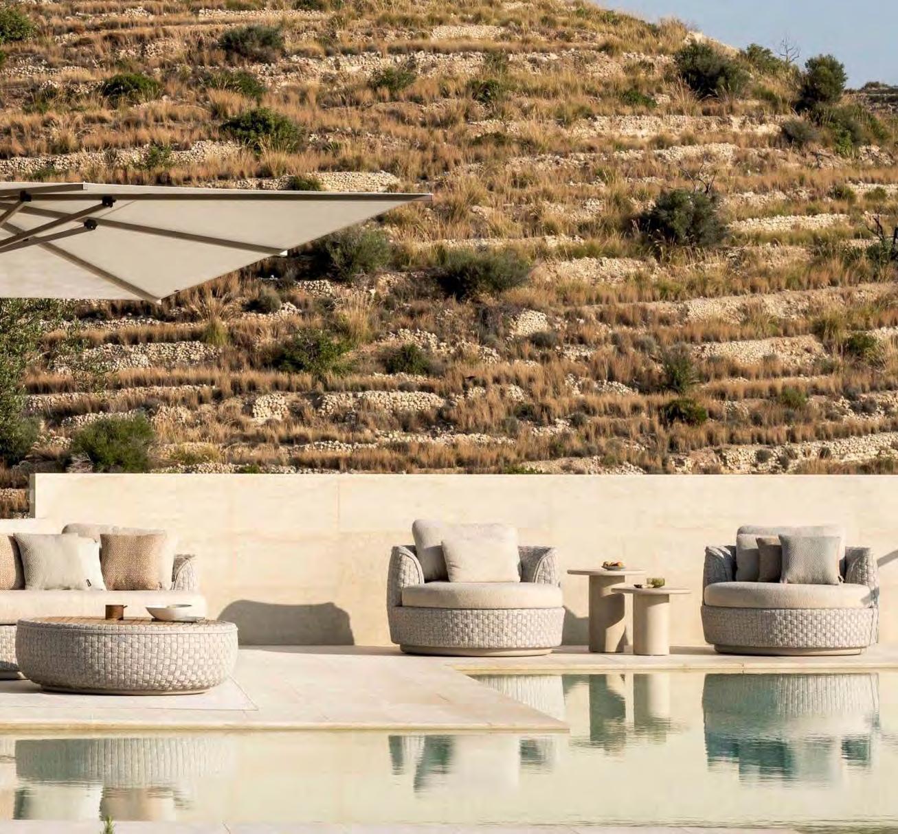 The perfect solution: luxury furniture designed for year-round use, with fade-resistant fabrics, rustproof metals, and allweather materials that maintain their integrity through every forecast. Comfortable, elevated, and built to last, ensuring that every season is patio season.
