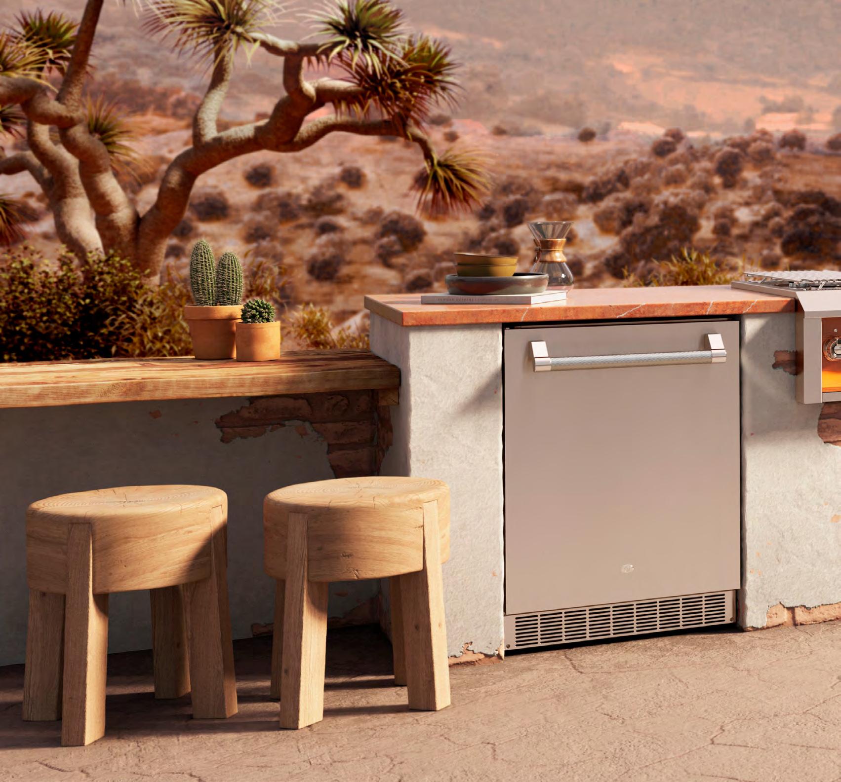 outdoor kitchen must be as hardworking as it is Hestan’s sleek, high-performance appliances are built to and the demands of the open desert. With precision and resilient stainless steel, this setup turns even landscapes into refined entertaining spaces.