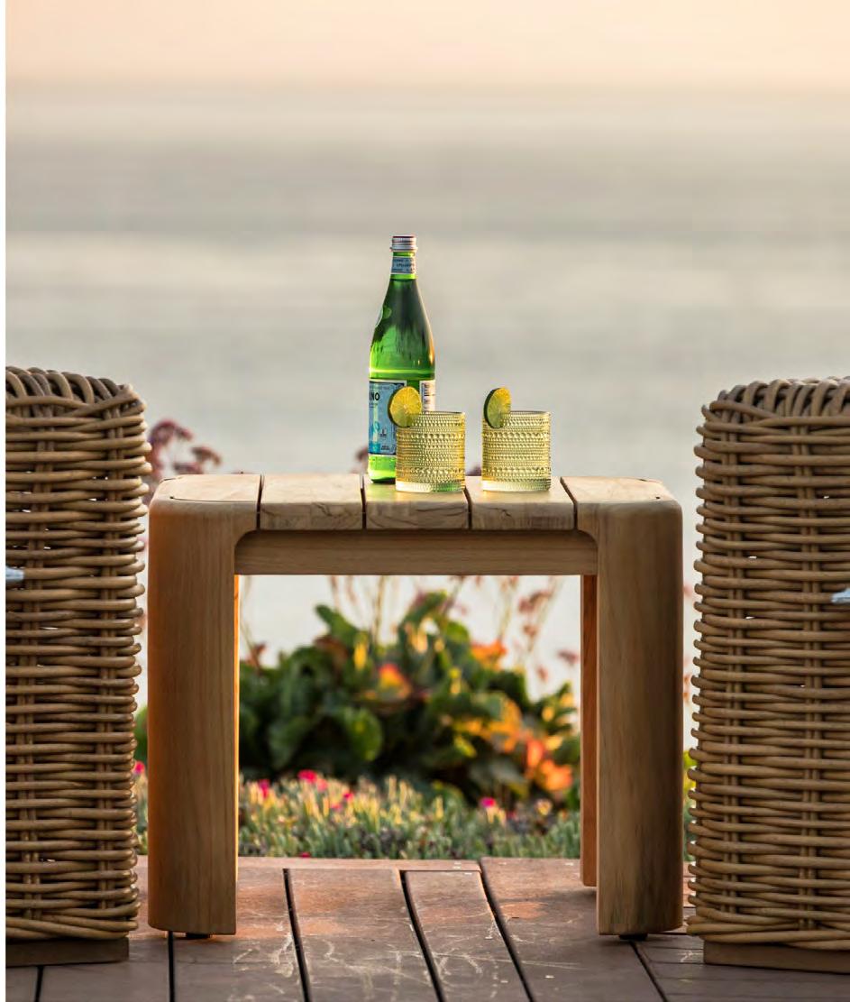 Lightweight aluminum frames and allweather, UV-resistant woven details are durable and designed to withstand the ocean air and shifting skies. The result is timeless quality, built to host and made to last.